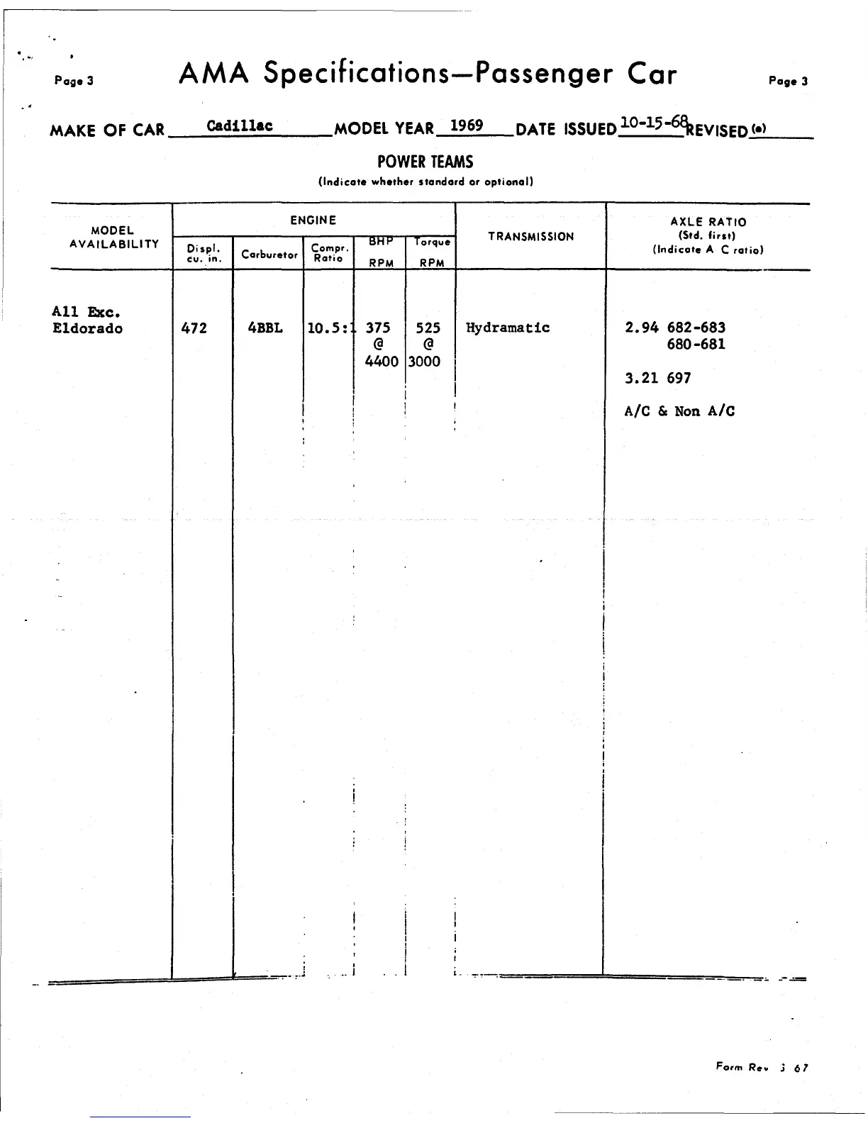 MAKE OF CAR Cadillac MODEL YEAR 1969