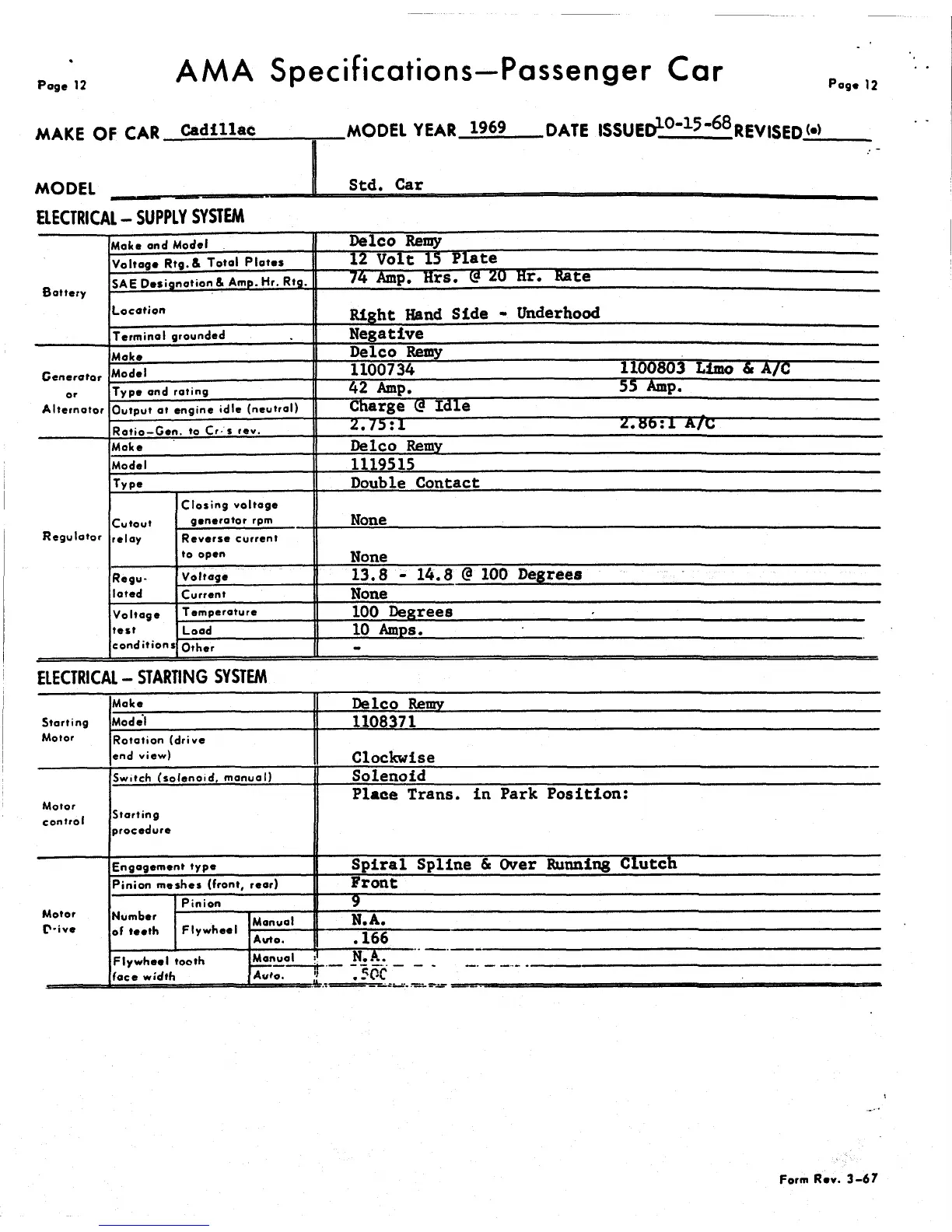 MAKE OF CAR Cadillac MODEL YEAR 1969 DATE ISSUEDl£^£^£REVISEDi±