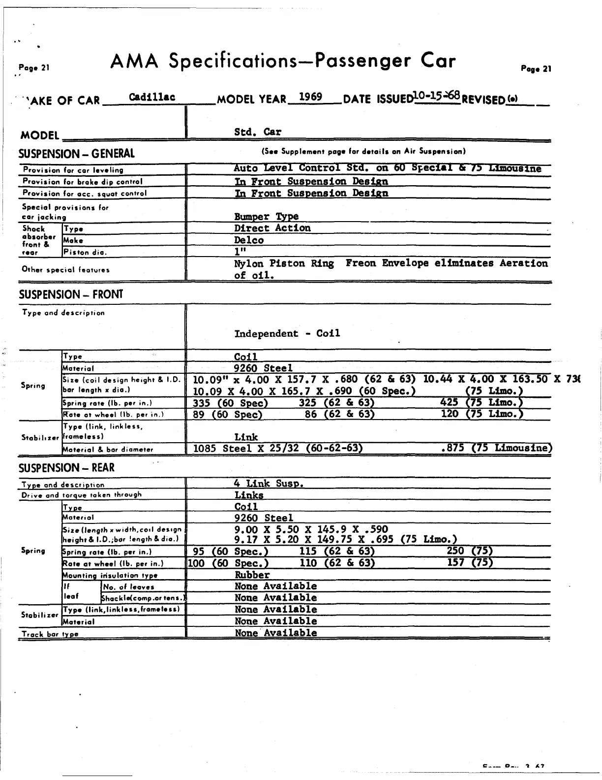 (See Supplement page (or details on Air Suspension)