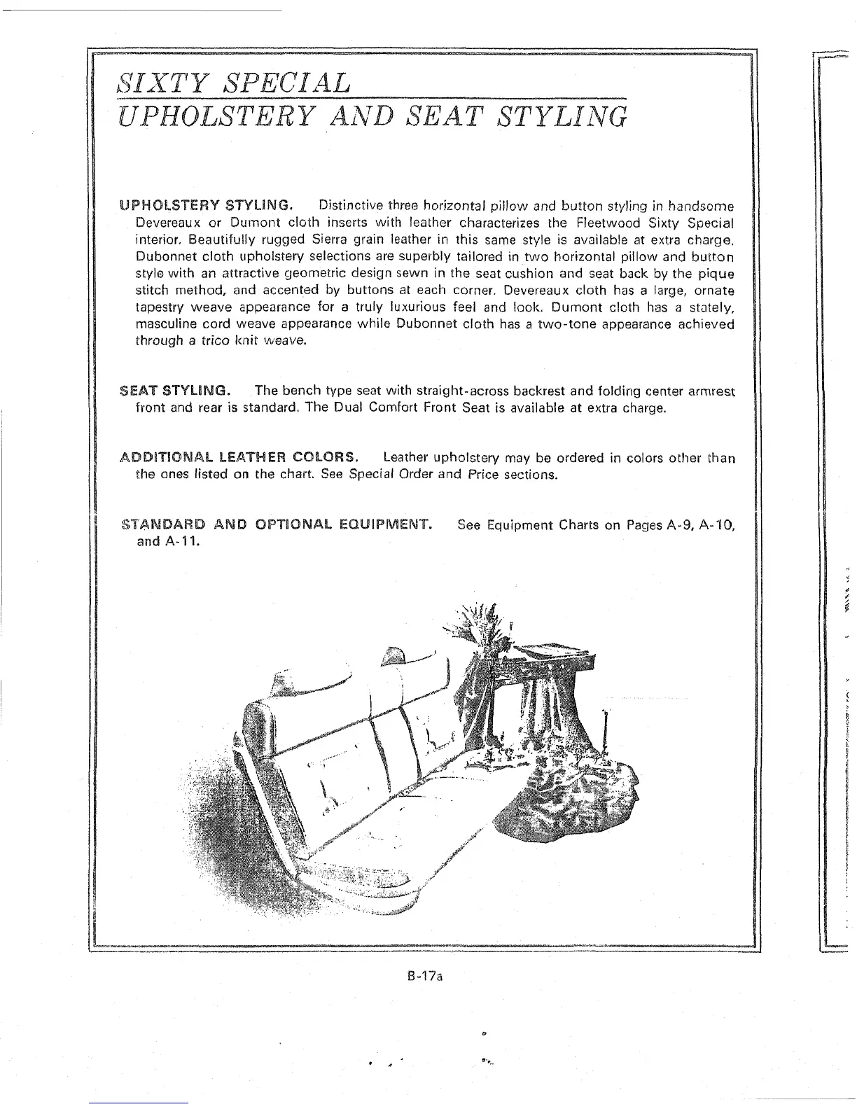 Devereaux or Dumont cloth inserts with leather characterizes the Fleetwood Sixty Special