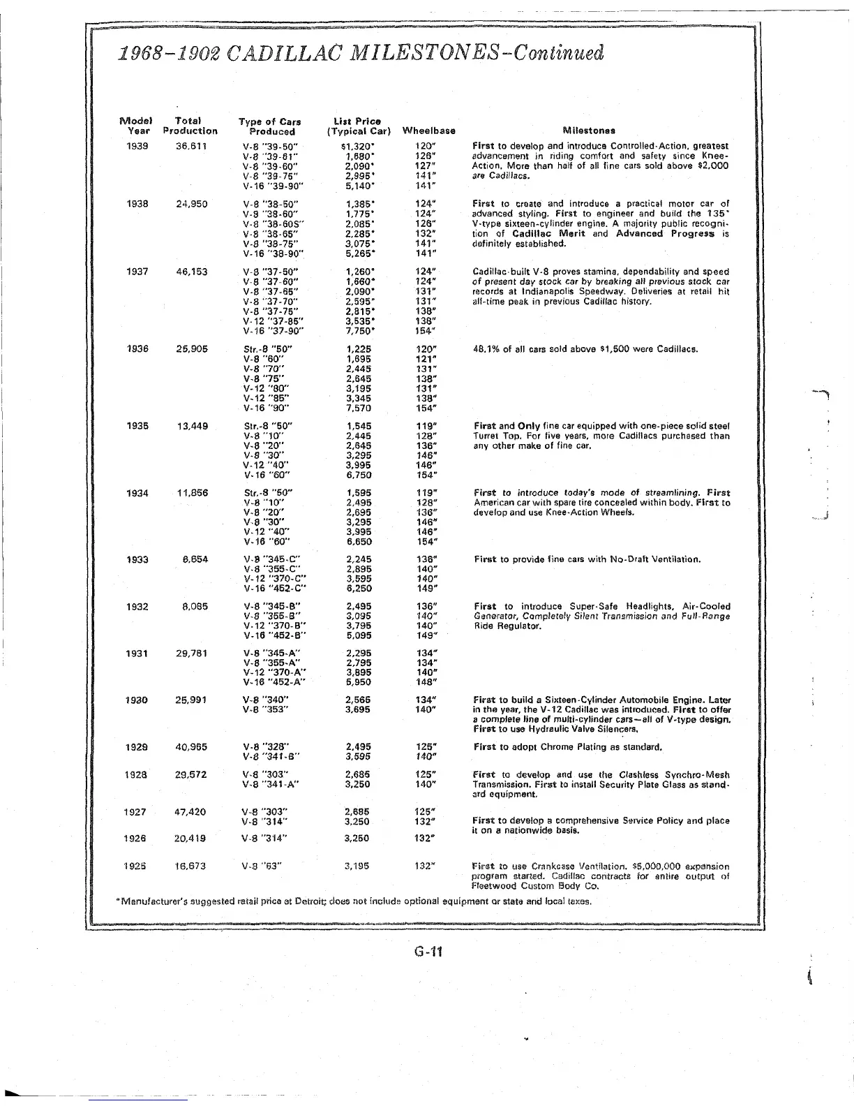1968-1902 CADILLAC MILE STONES-Continued