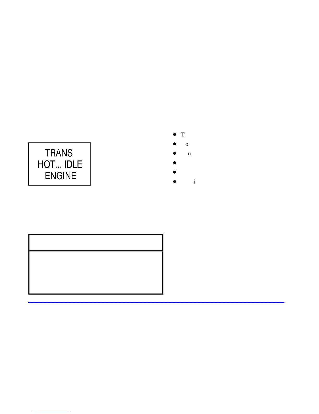 TRANS HOT...IDLE ENGINE Message