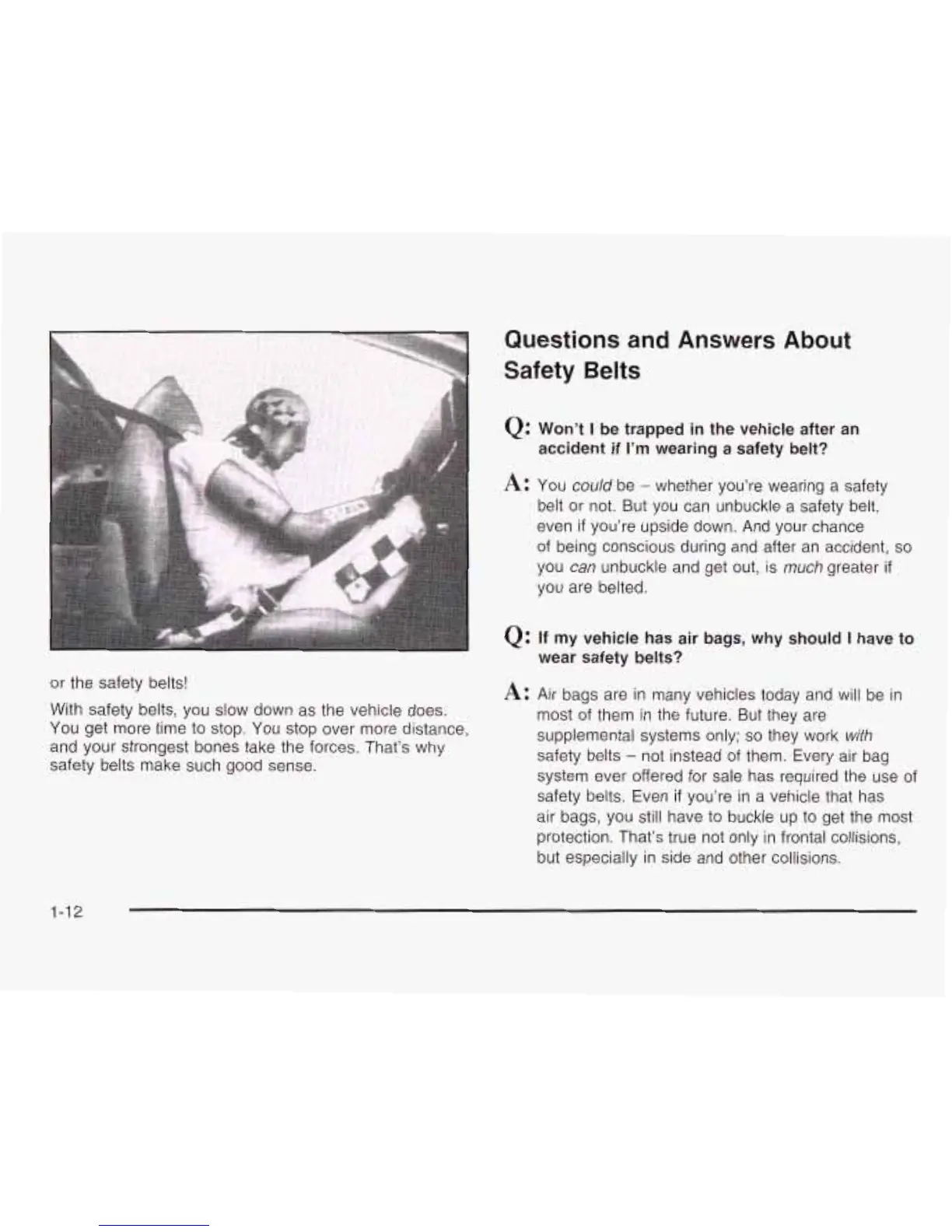 With safety belts, you slow down as the vehicle does.