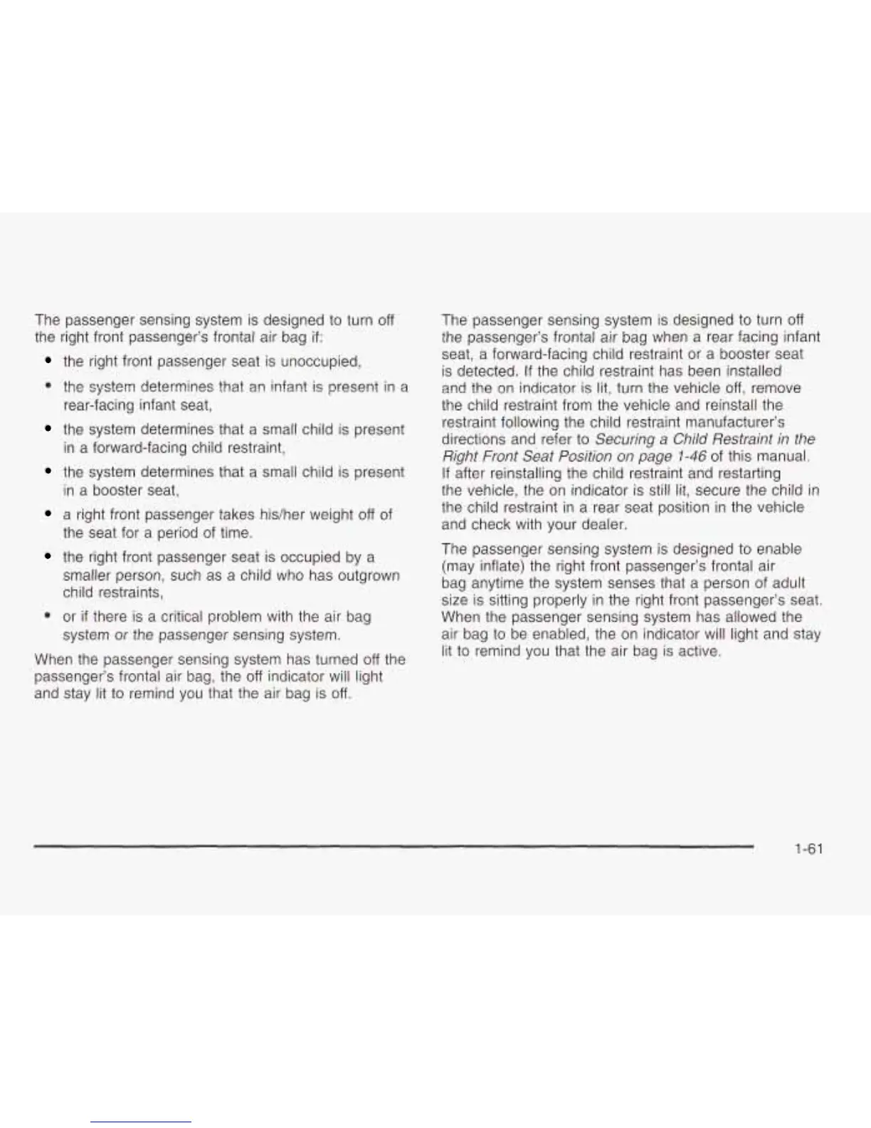 The passenger sensing system is designed to turn off