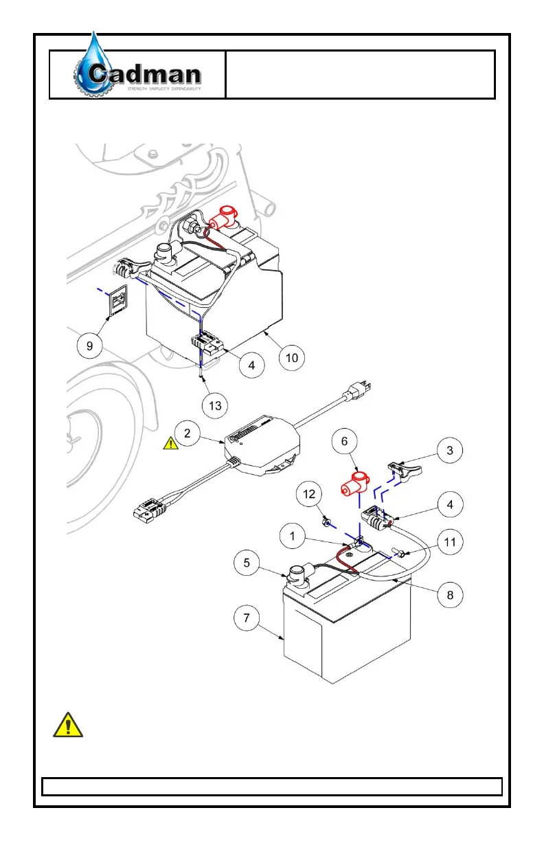 Never Connect Battery Charger directly to machine. Connecting the charger to