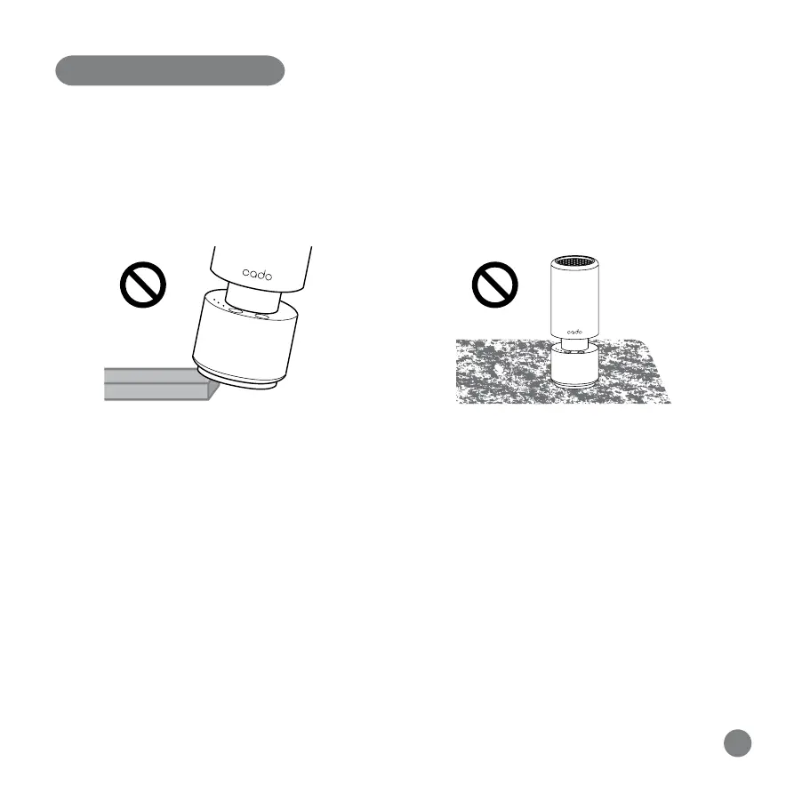 • Do not place on top of carpeting, electric carpets, futons, and other soft materials. The air inlet