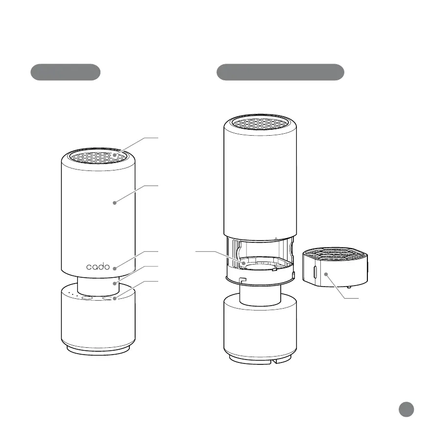 CADO Leaf Portable MP-C30 - Names of Components; Base unit; Unit back face and filter area