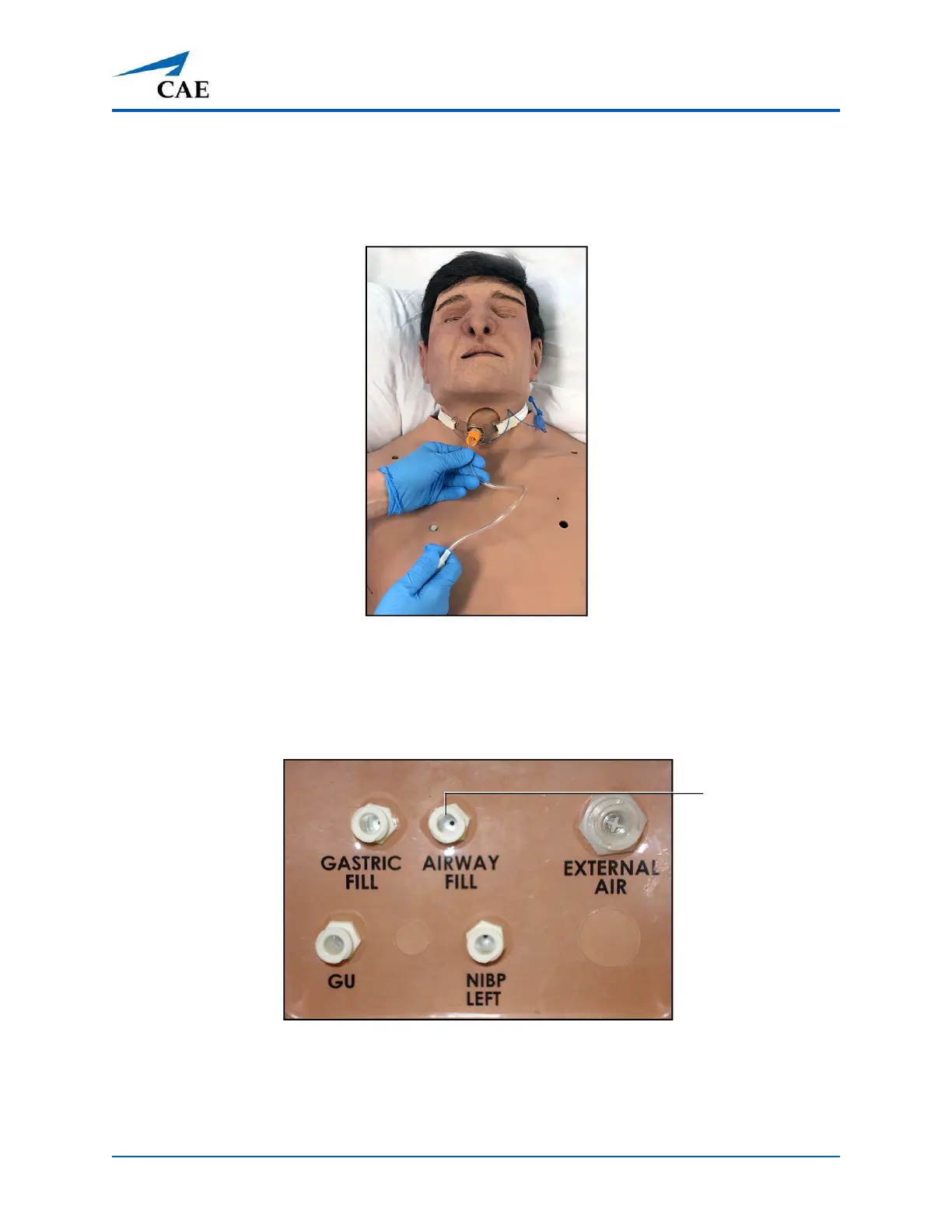 1. Inject up to 40 ml of clinically appropriate colored fluid into the AIRWAY FILL port on