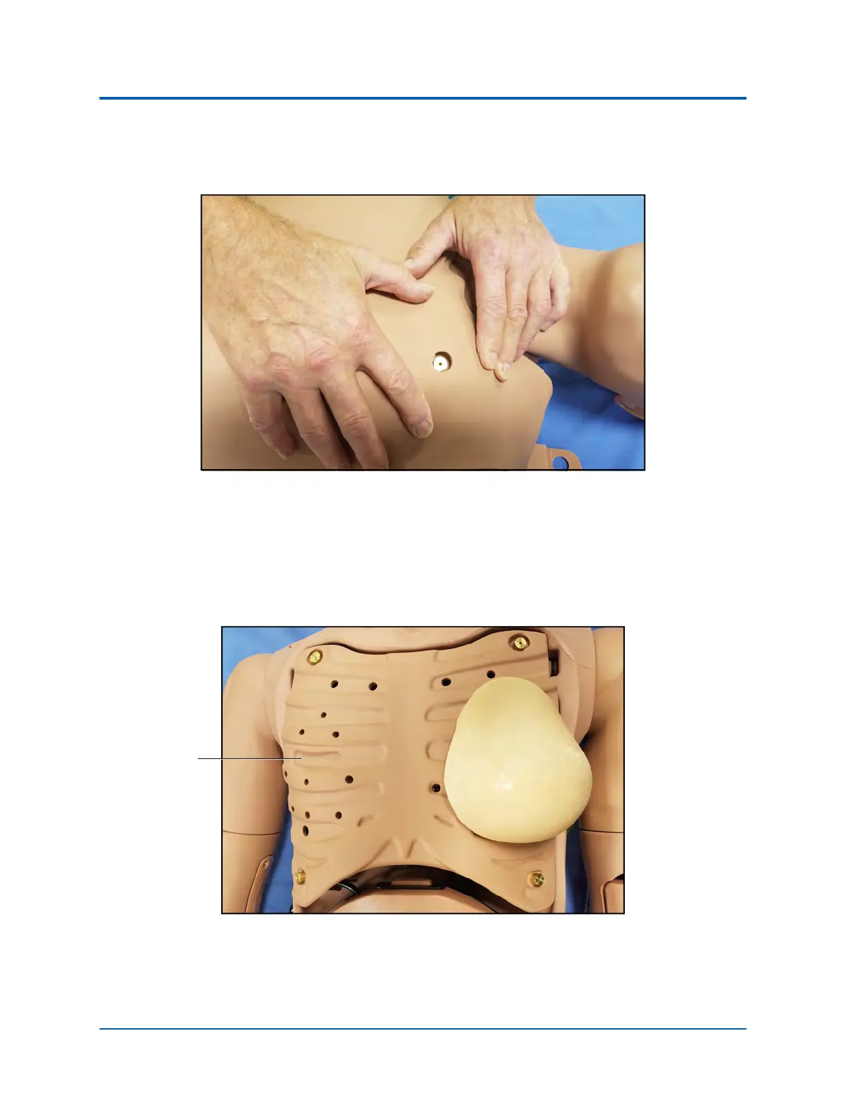 prior to placing the chest skin. Use the breast foam alignment guides on the manikin to assist with