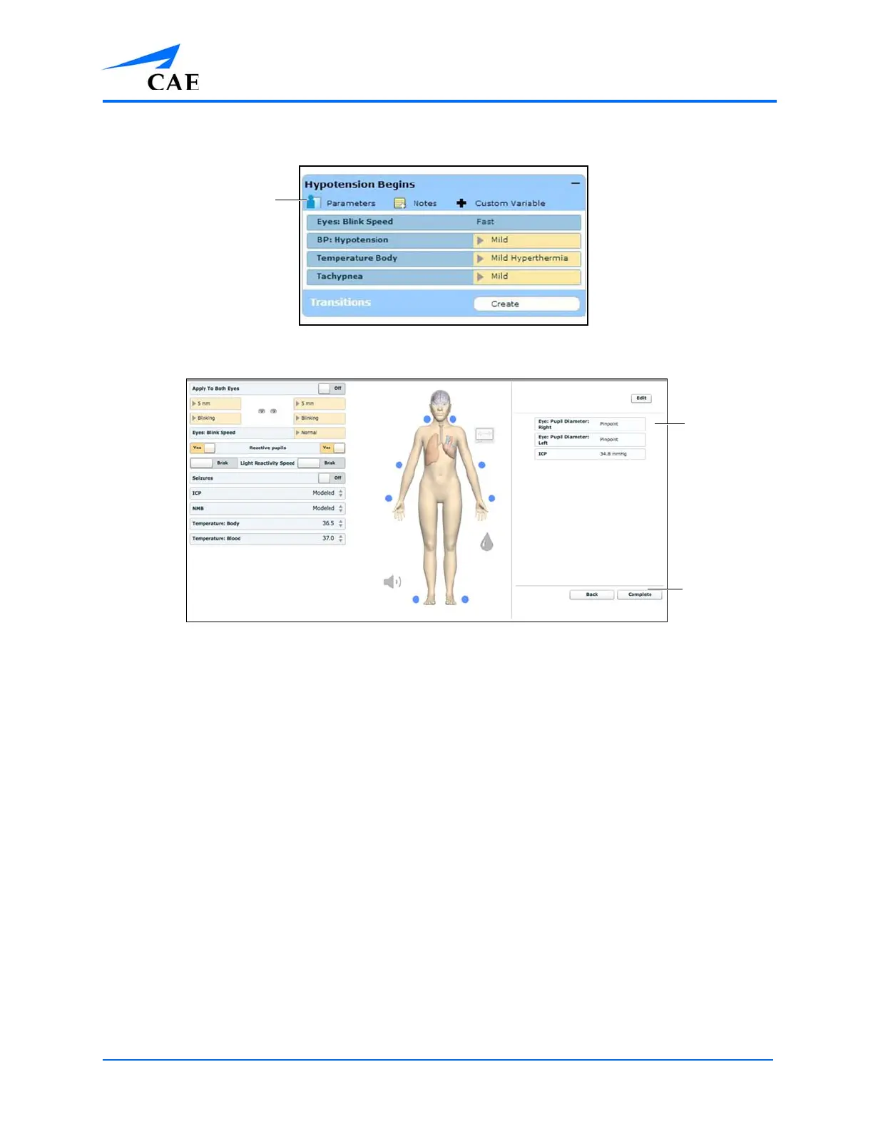 Note: If the physiology of any of the parameters conflicts, the Müse software reflects the physiology