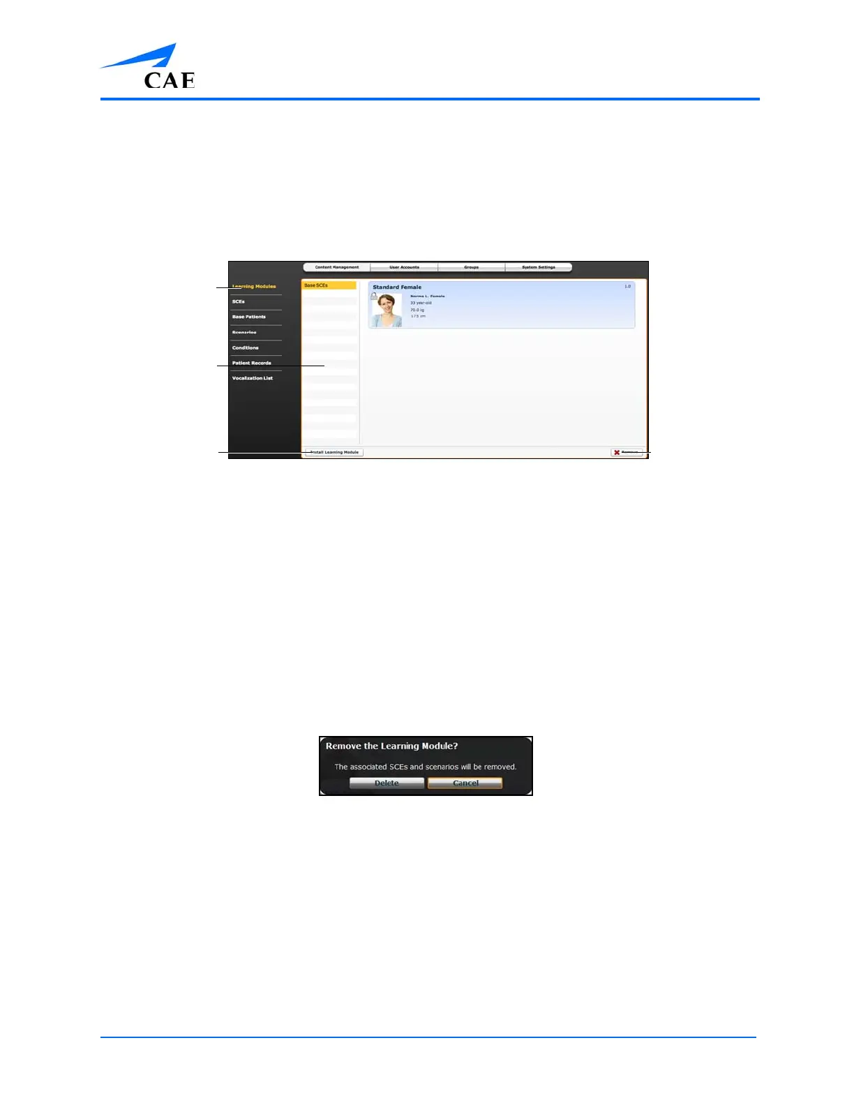 From the Learning Modules panel, learning modules can be installed or deleted.