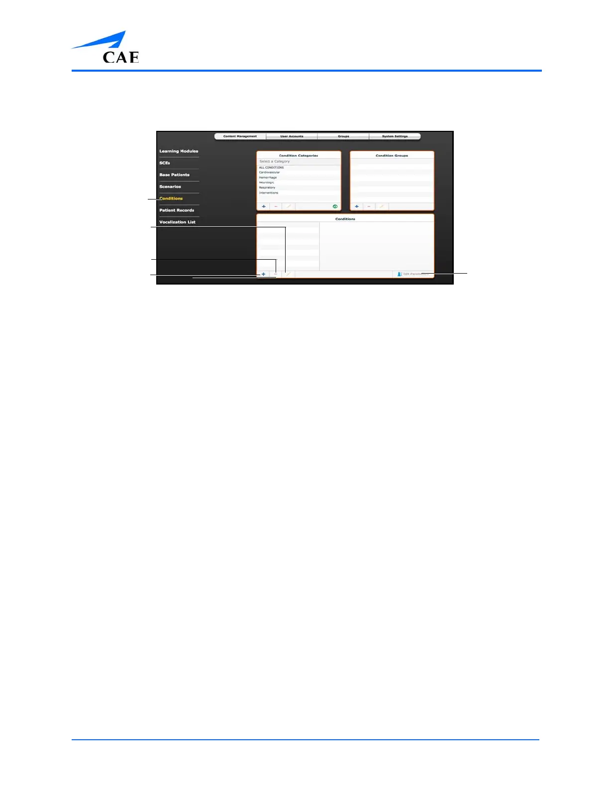 Note: CAE conditions, groups and categories cannot be deleted or renamed.