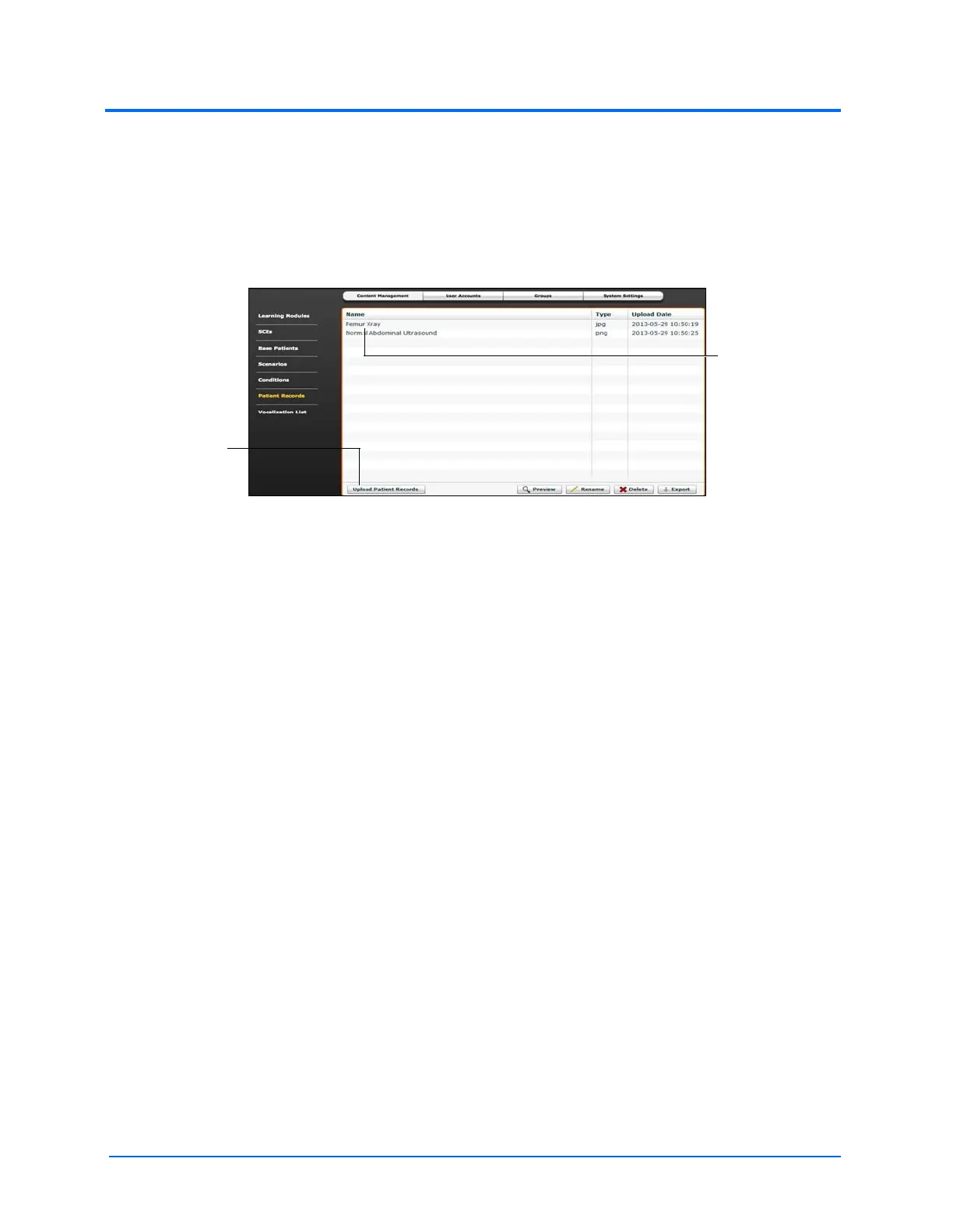 Patient Records are managed from the Patient Records panel on the Content Management tab of