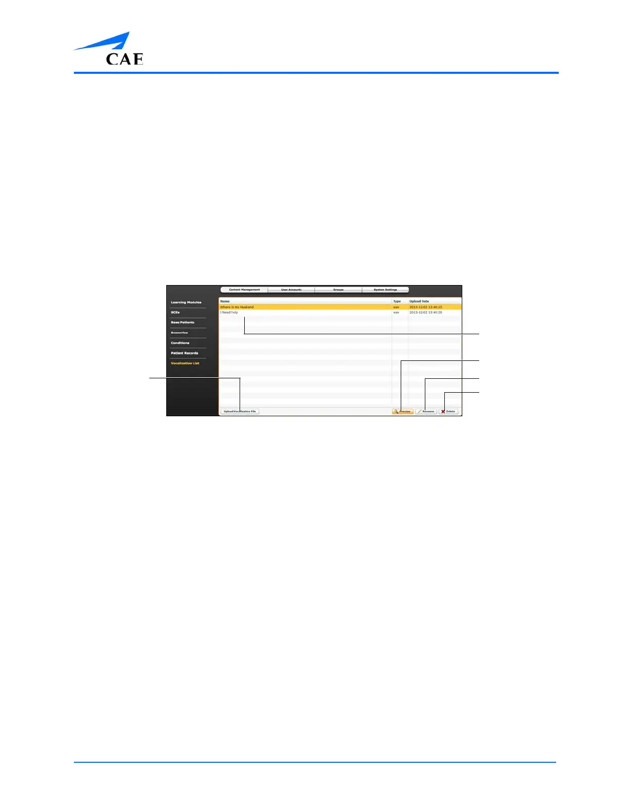 1. From Vocalization List panel, click Upload Vocalization File
