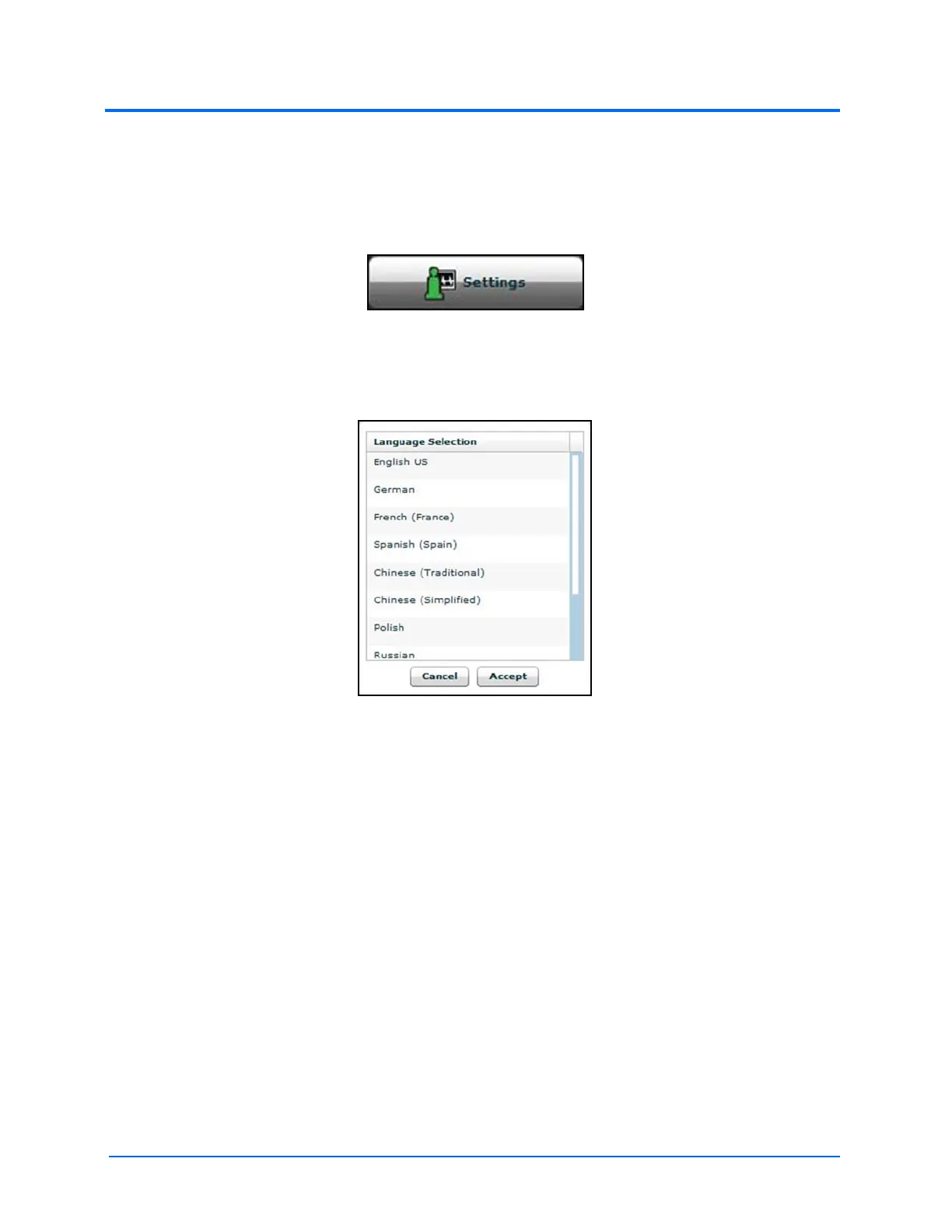 2. From the Settings menu, click the Language Selection button