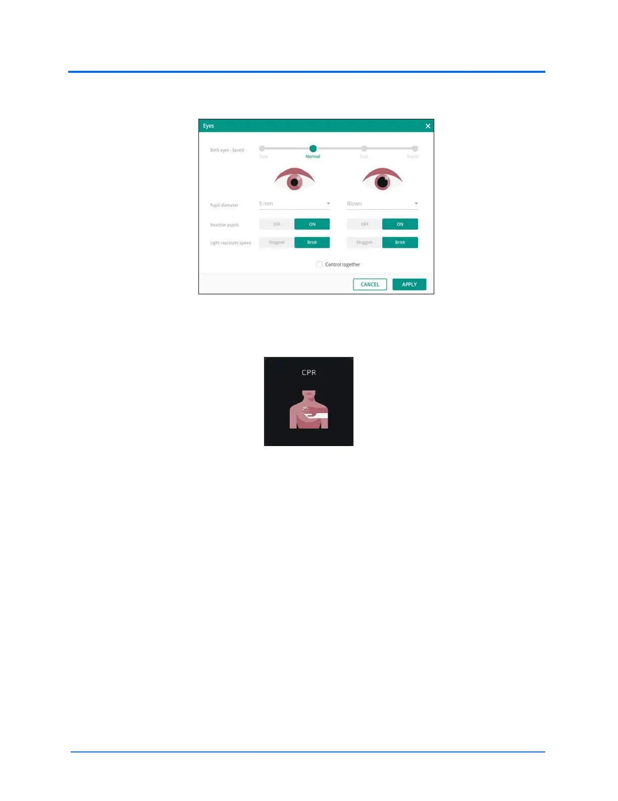 • Tap on the CPR tile to open the parameters window