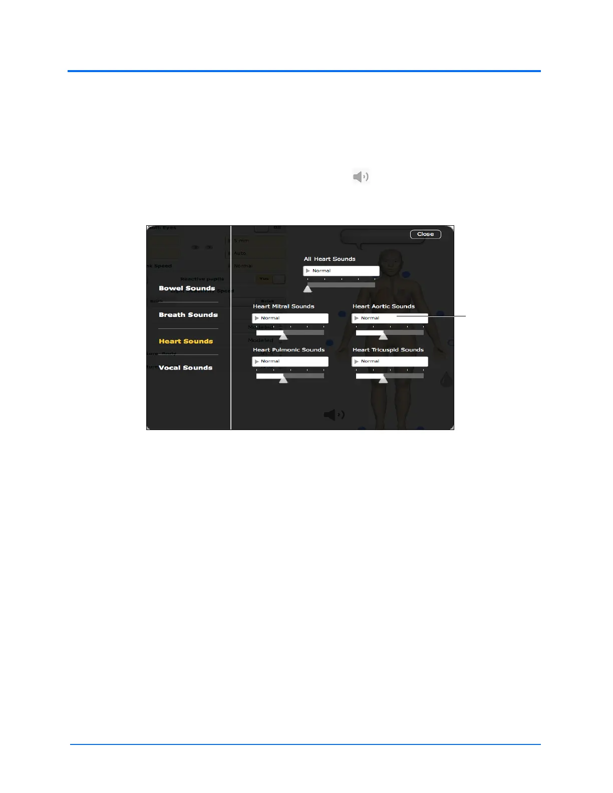 Heart sounds can be adjusted by clicking the Sound Control icon on the Run screen. When the