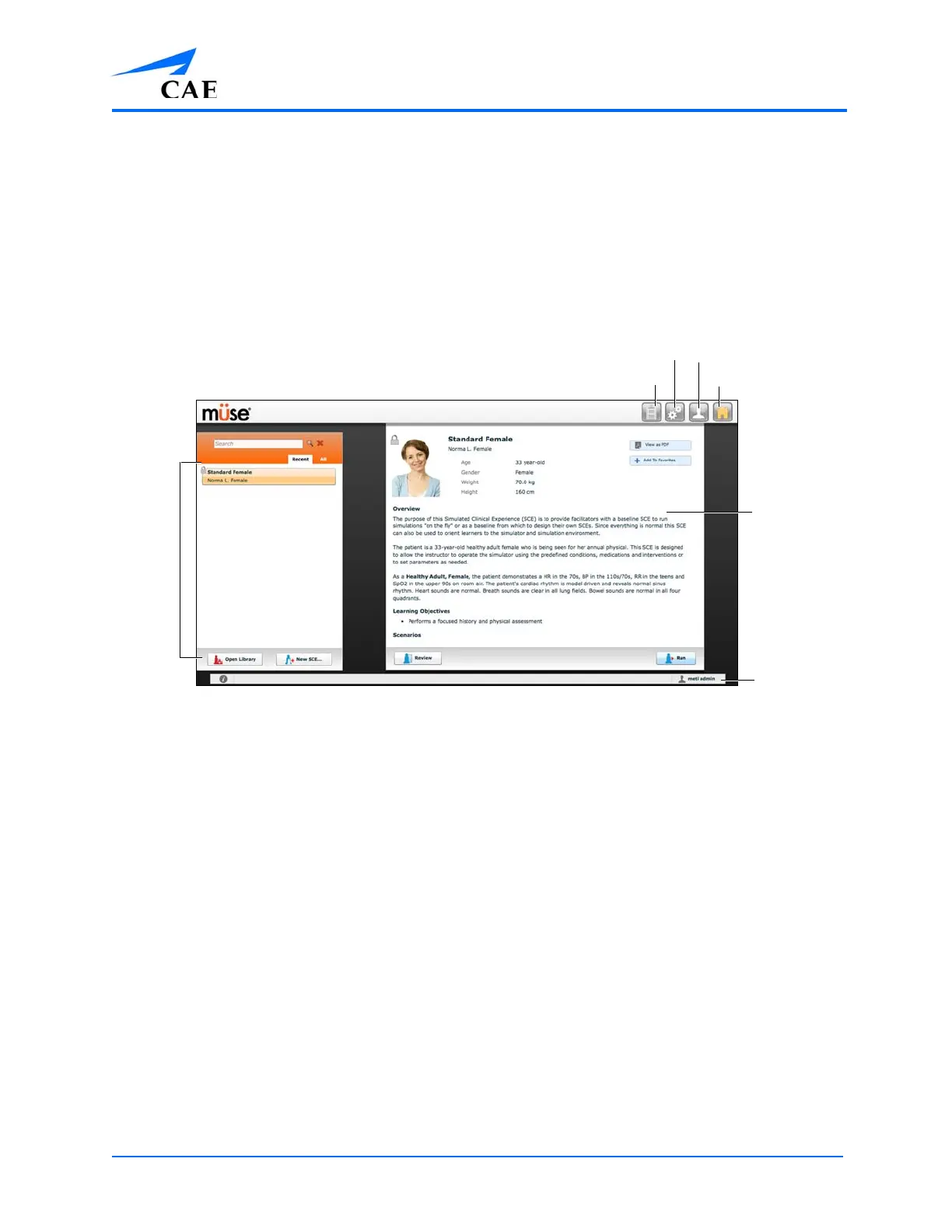 The Home page can be accessed by clicking the Home button in the upper right corner of the Müse