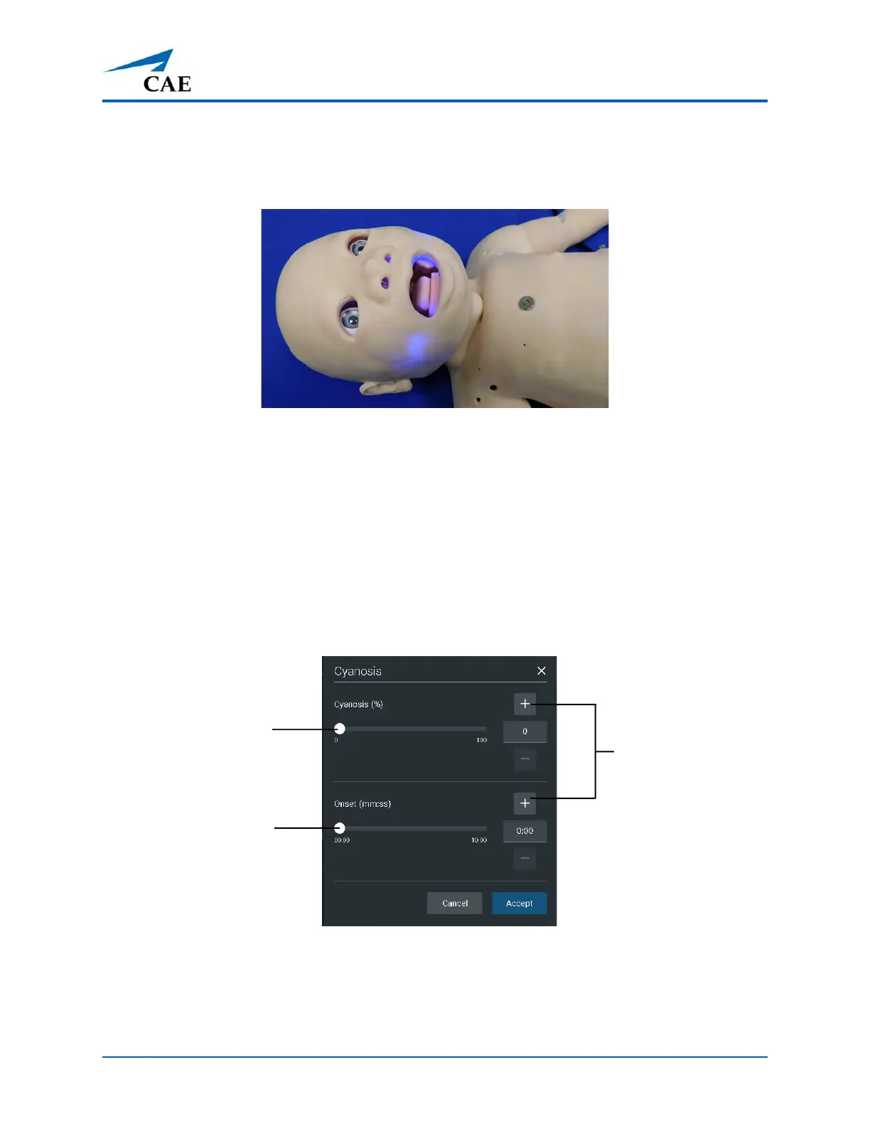 3. For instant cyanosis, slide the Cyanosis percentage or tap the plus sign and tap Accept to