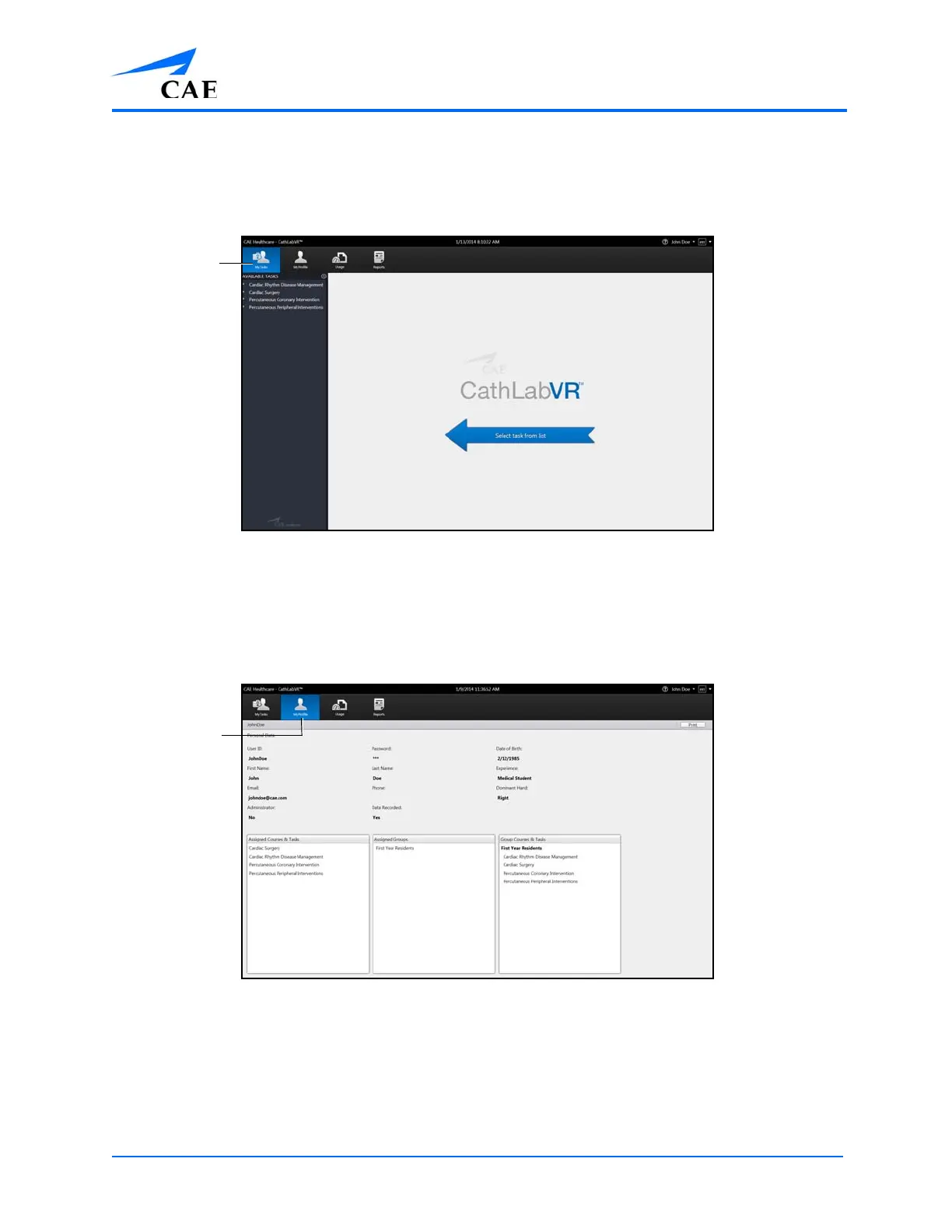 From the My Tasks screen, users can choose a simulation, review didactic content, run a simulation
