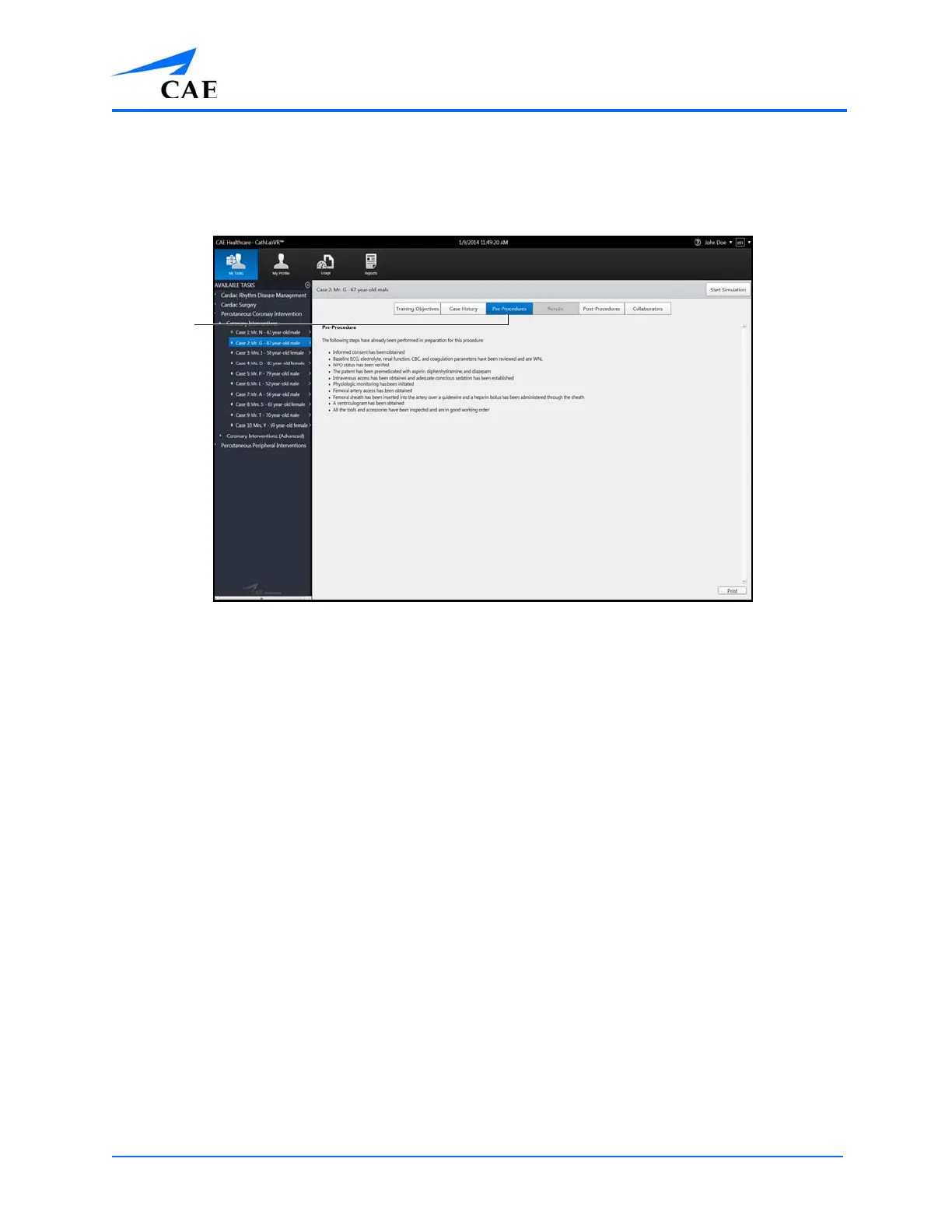 The Pre-Procedures screen provides steps the user needs to complete prior to beginning the