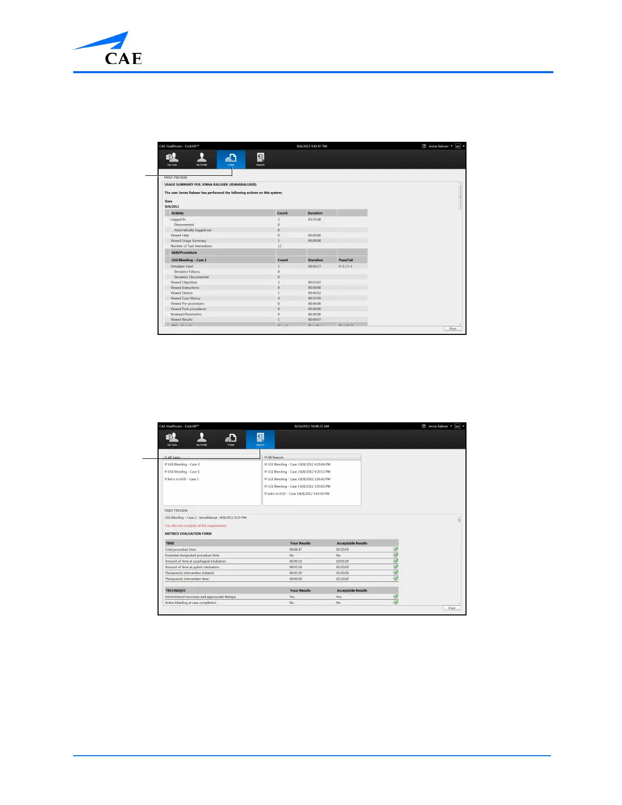 From the Usage screen, review and print their usage summaries for completed simulations.