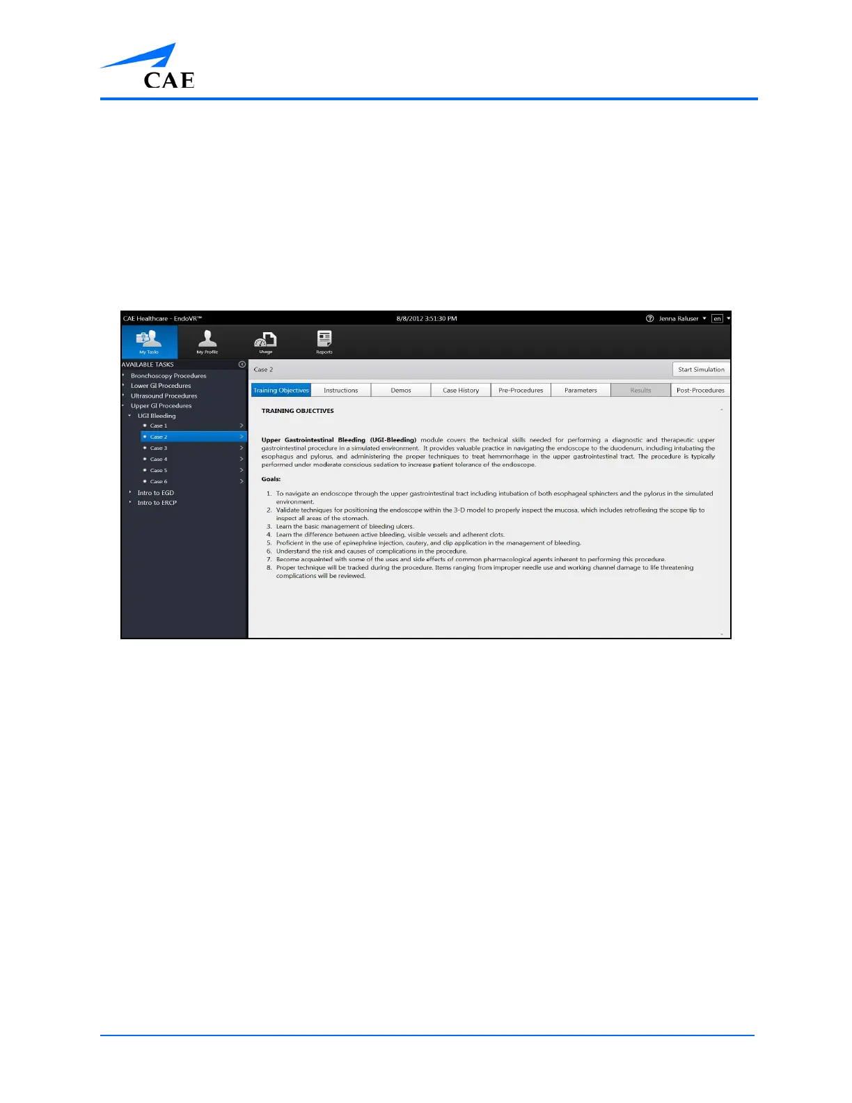 Before beginning a simulation, users should review the didactic content for the selected procedure.