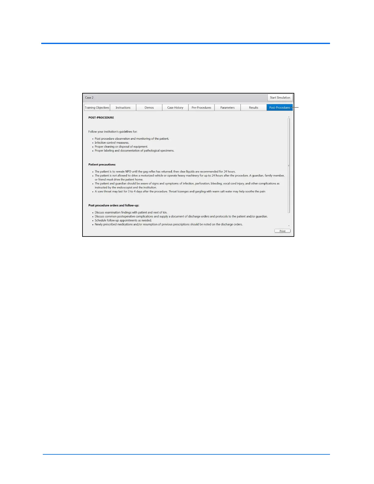 The Post-Procedures screen provides actions users should perform after the procedure is complete.