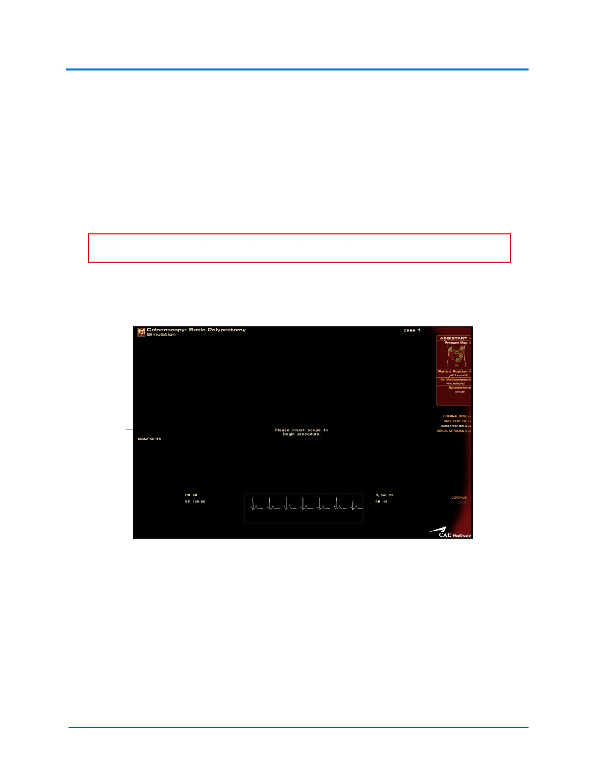 4. When the Please Insert Scope to Begin Procedure message appears on the Simulation