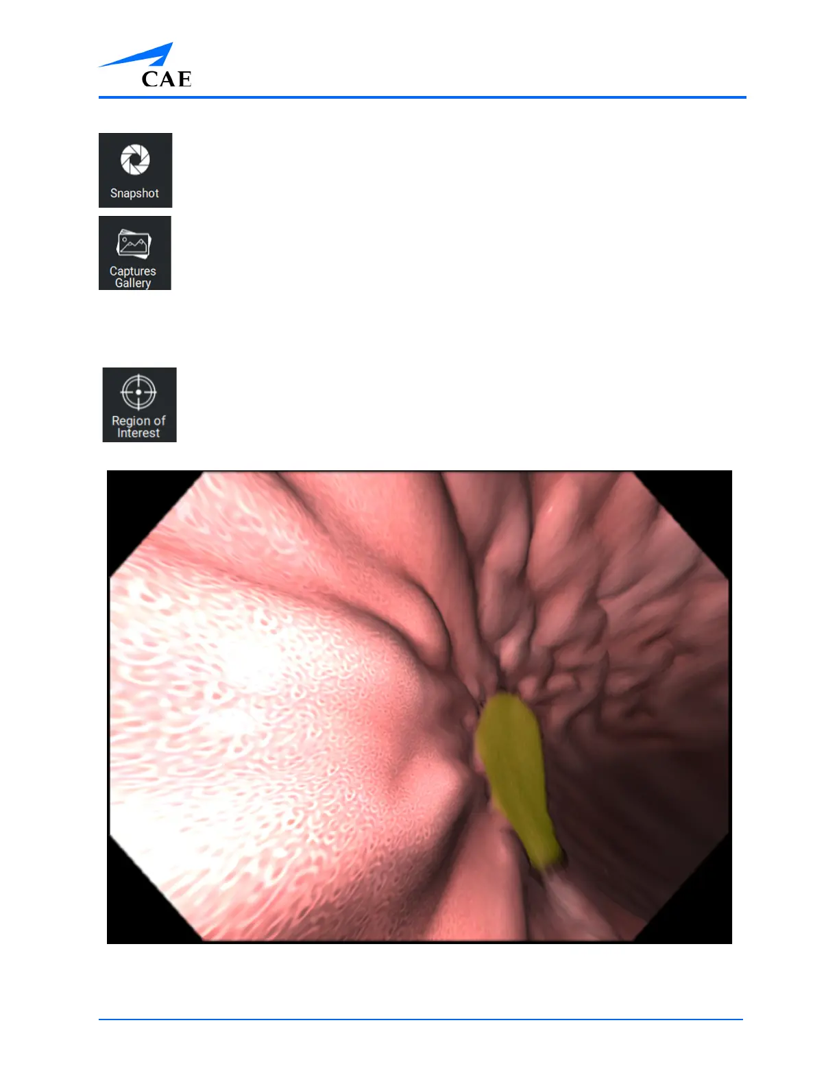 The Snapshot button takes a snapshot of the ENDOSCOPIC VIEW and saves the image in the
