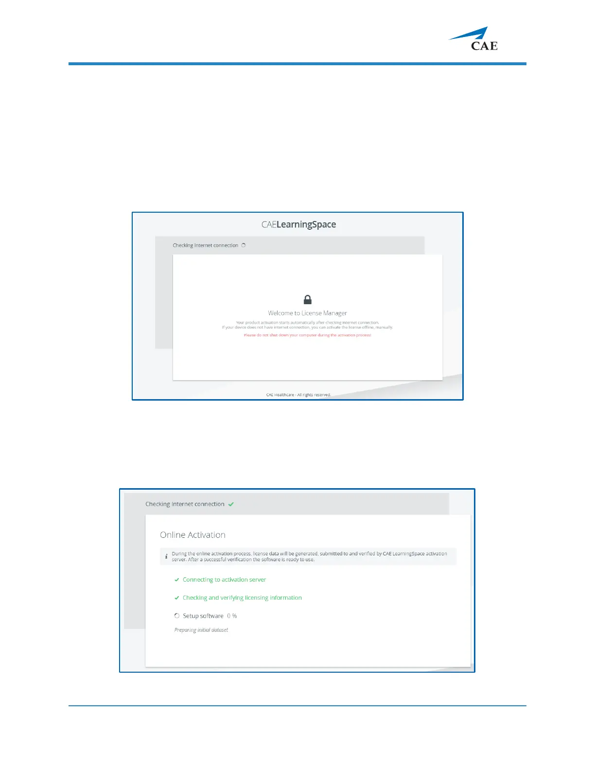 Following the network setup, the purchased CAE LearningSpace software can be activated