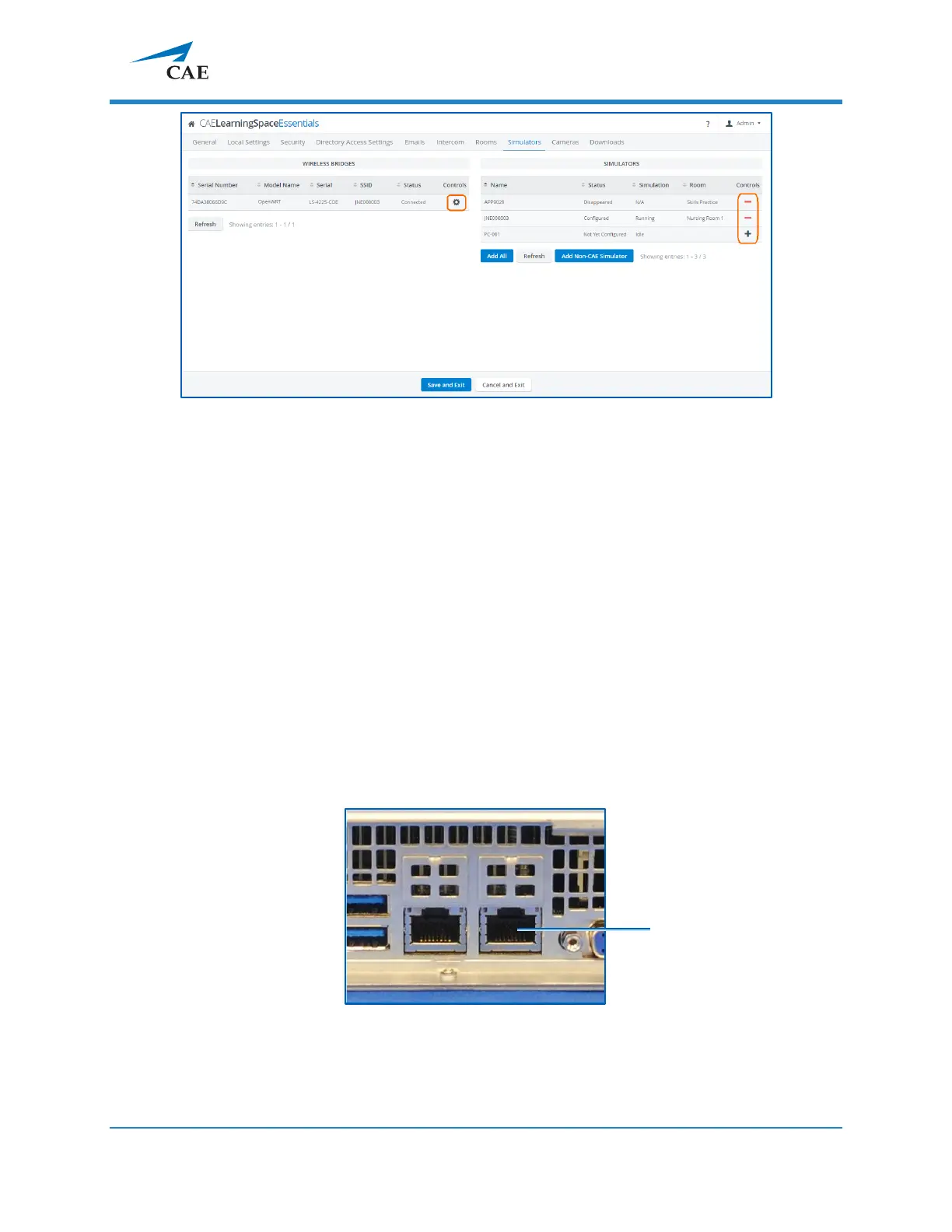 IMPORTANT: To connect a wired CAE simulator, a CAE Simulator Bridge is required,