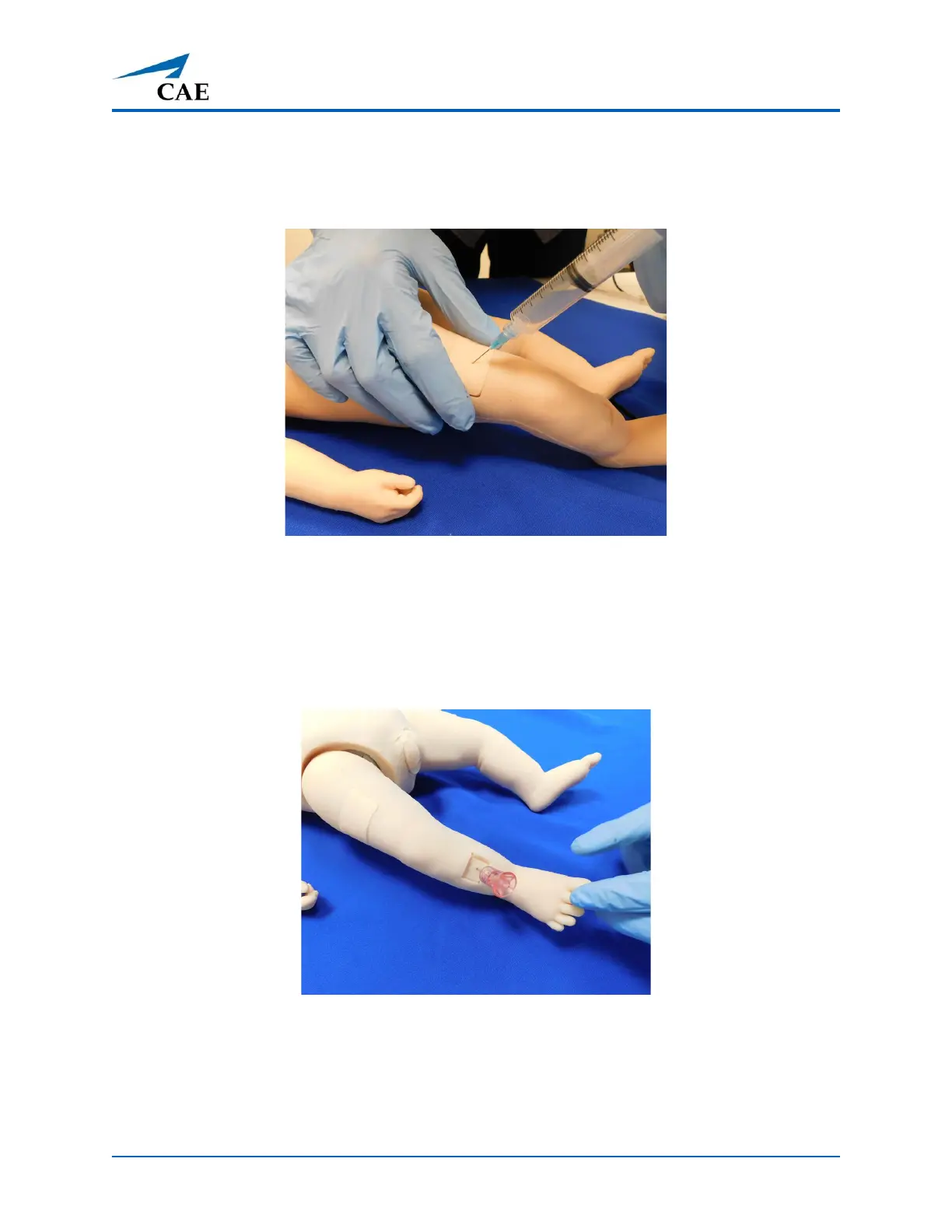 The intramuscular/subcutaneous sites are located on the right and left vastus lateralis of the manikin.