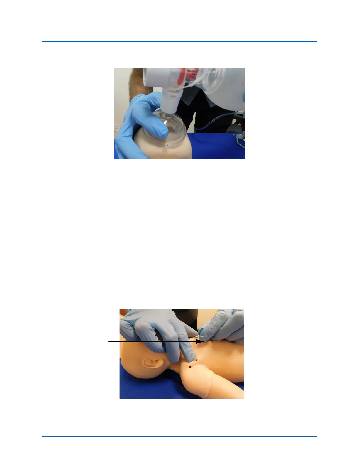 3. Use one hand to hold infant size mask in place and squeeze the bag with the other hand.