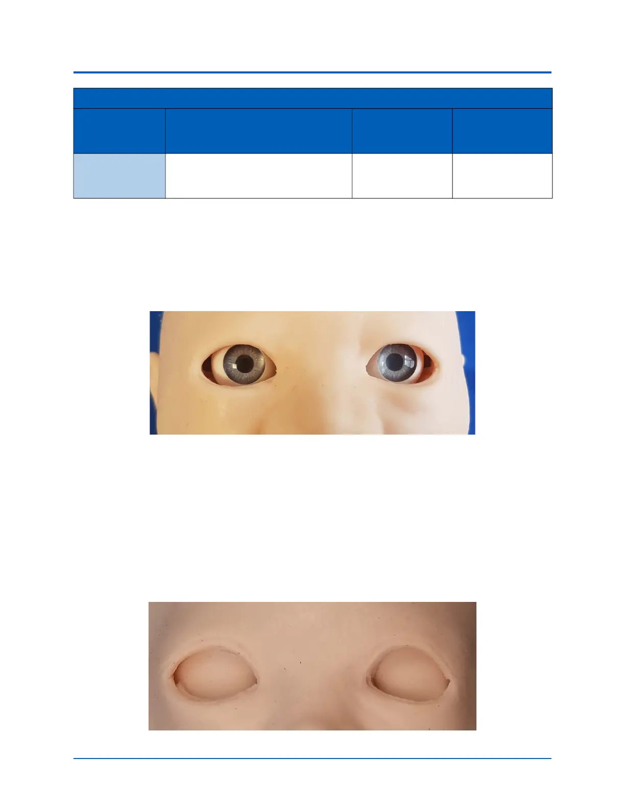 Each pupil of the Luna manikin can be set manually to a fixed diameter of 2 mm (pinpoint, normal or