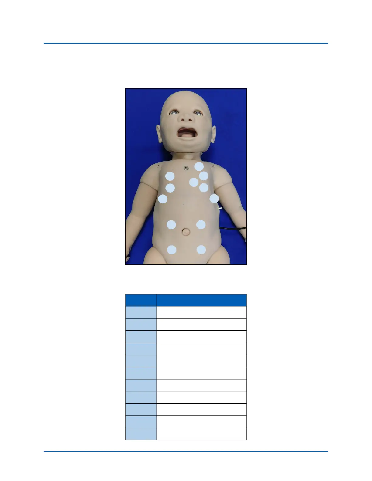 2. Place the StethoSym speaker module over a sound tag on the manikin for approximately