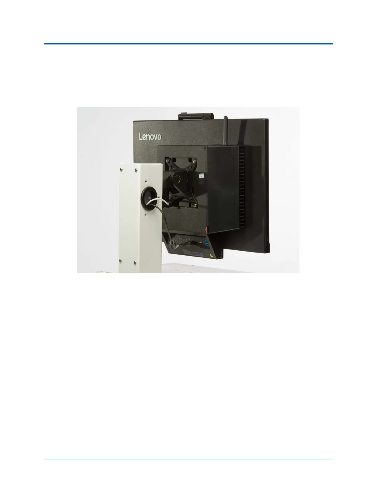Install the monitor on the cart by inserting the VESA mount hardware into the bracket