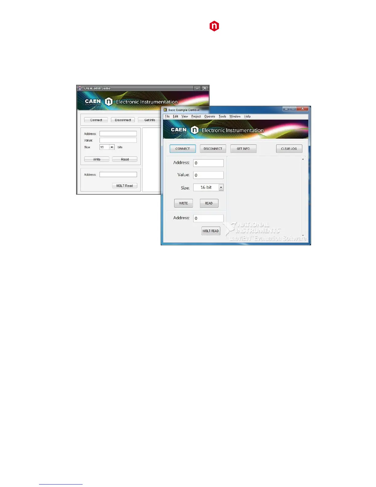 Fig. 11.2: CAENComm Demo Java and LabVIEW graphical interface