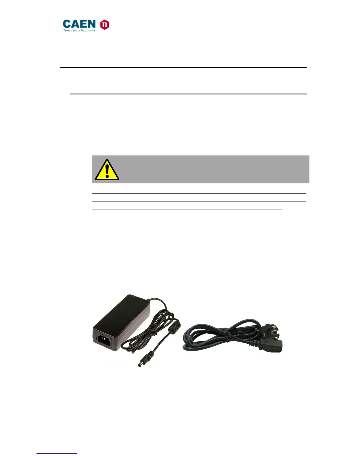 The DT5740 module is powered by the external AC/DC stabilized power supply provided with the