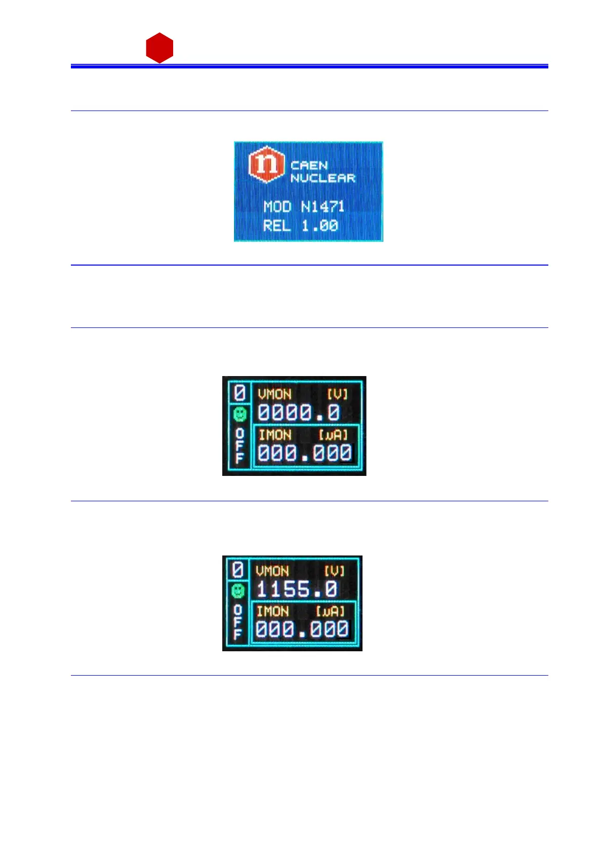 Ins ert the unit i nside a powered NIM crate, a nd switch it ON. At the power the Display shows for a few seconds