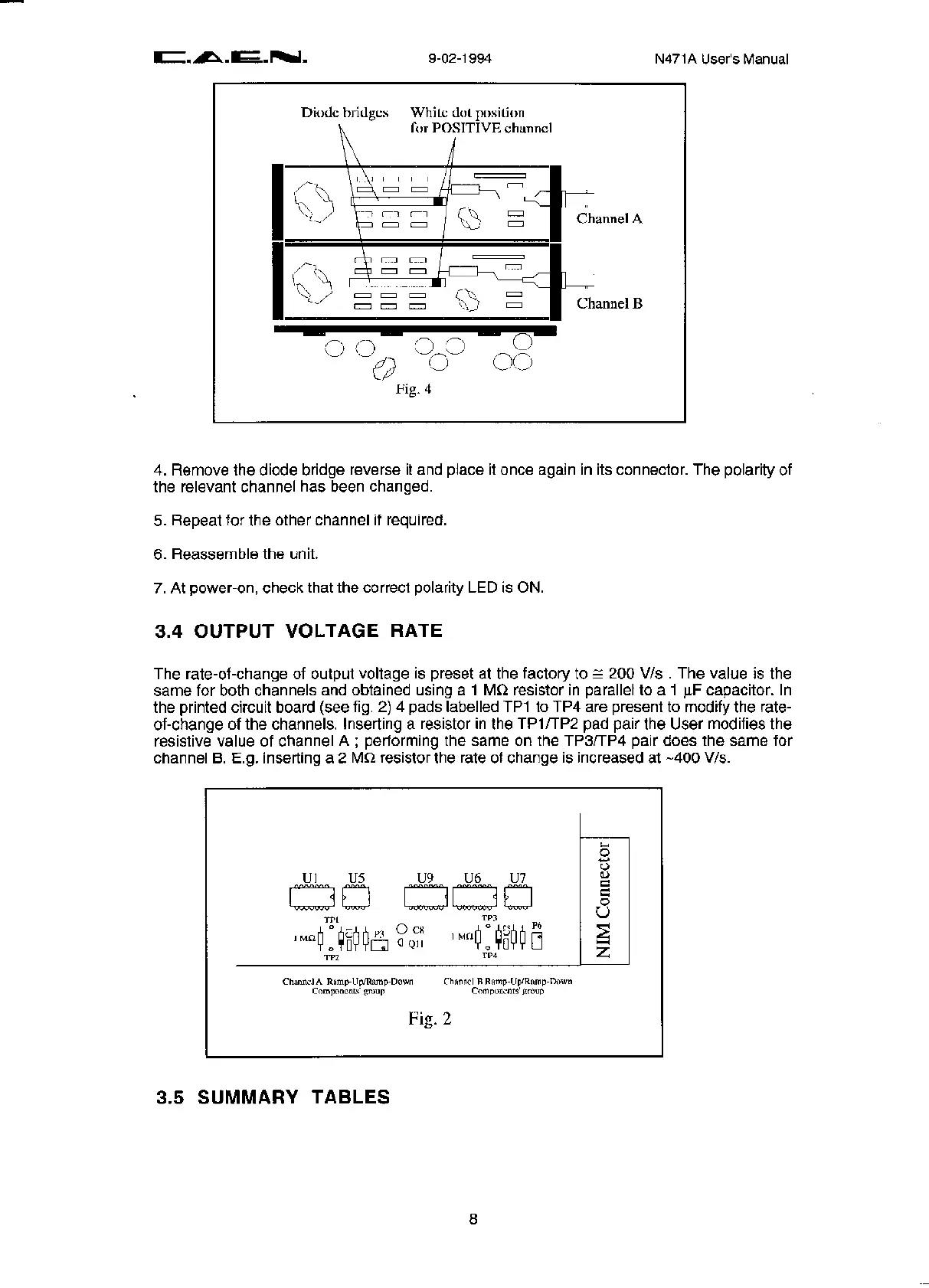 Caen N471A - Output Voltage Rate; Summary Tables