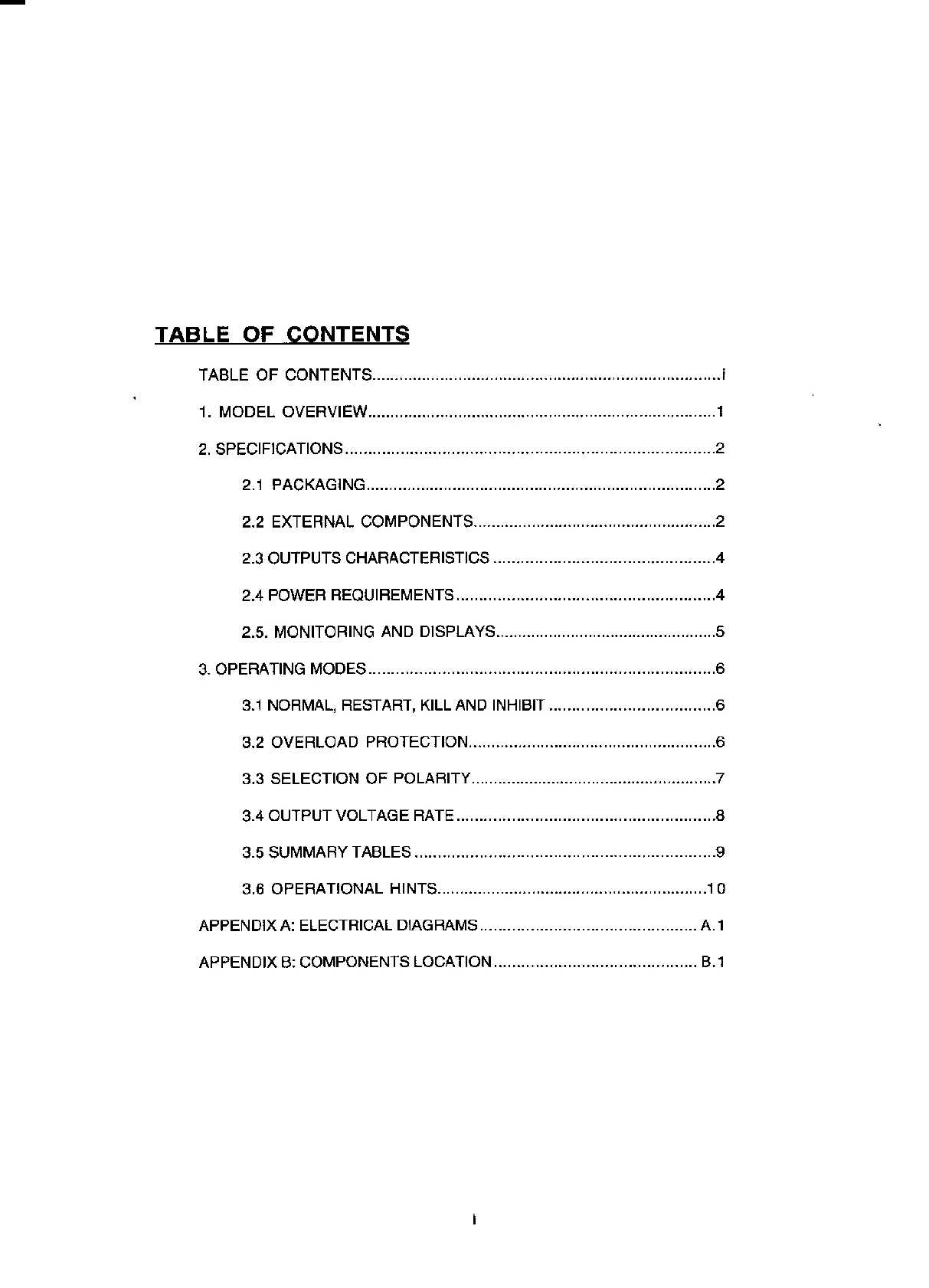 Caen N471A - Table of Contents