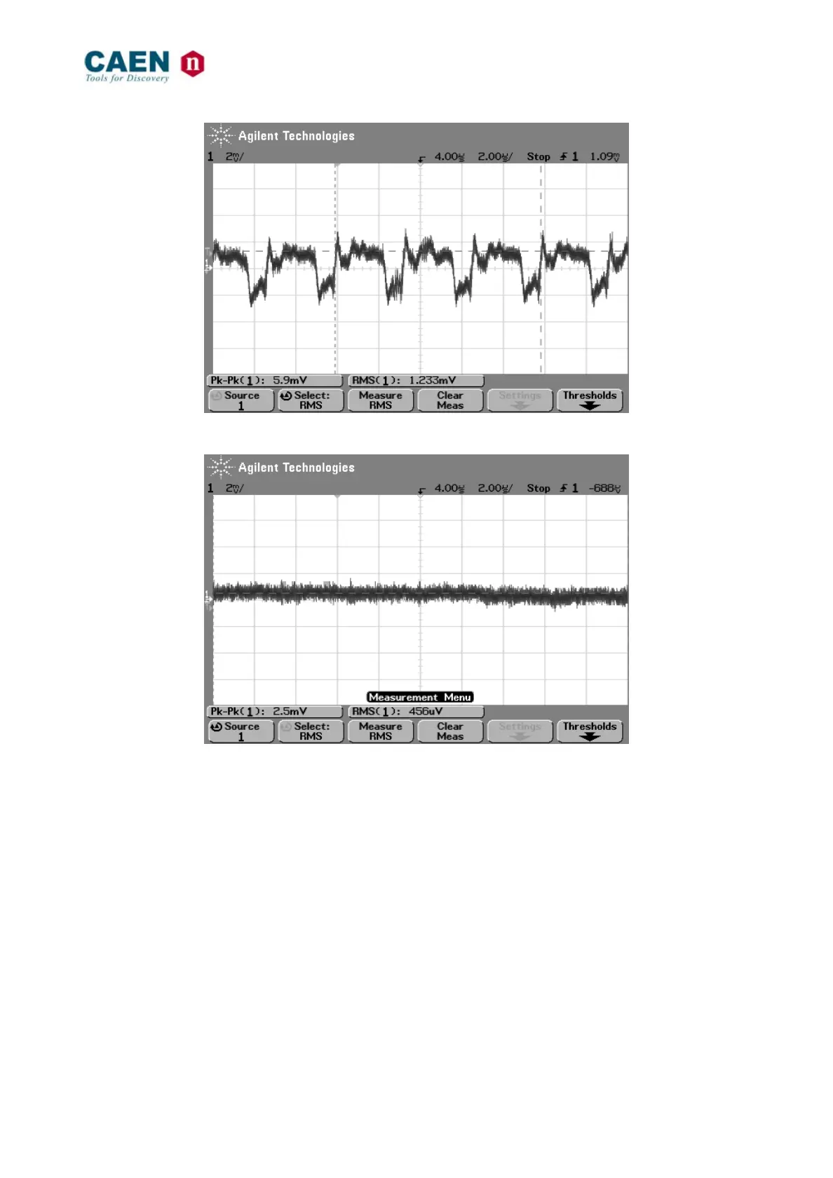 Fig. 3.6: Power Module ripple and noise Measured at load 0.5 m wire (@±6V, 90A)