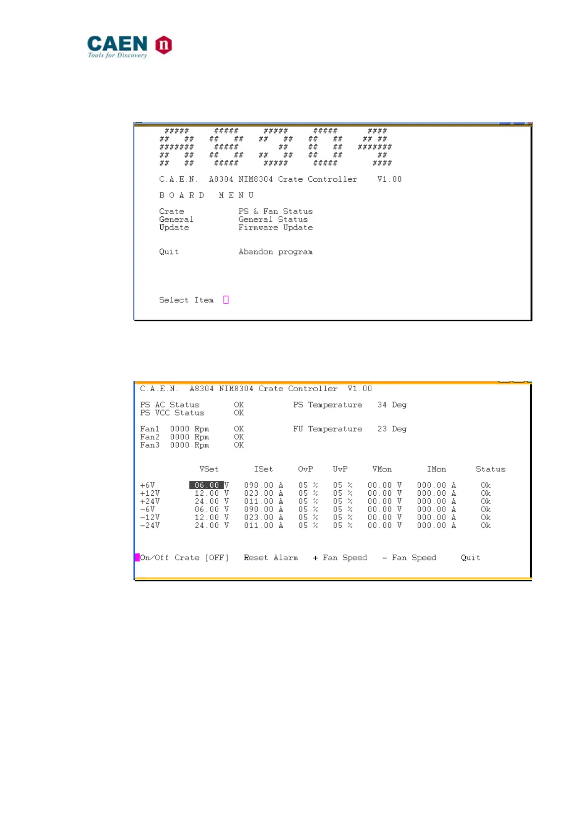 Fig. 6.8: Mod. NIM8304 PS & Fan Status Menu window