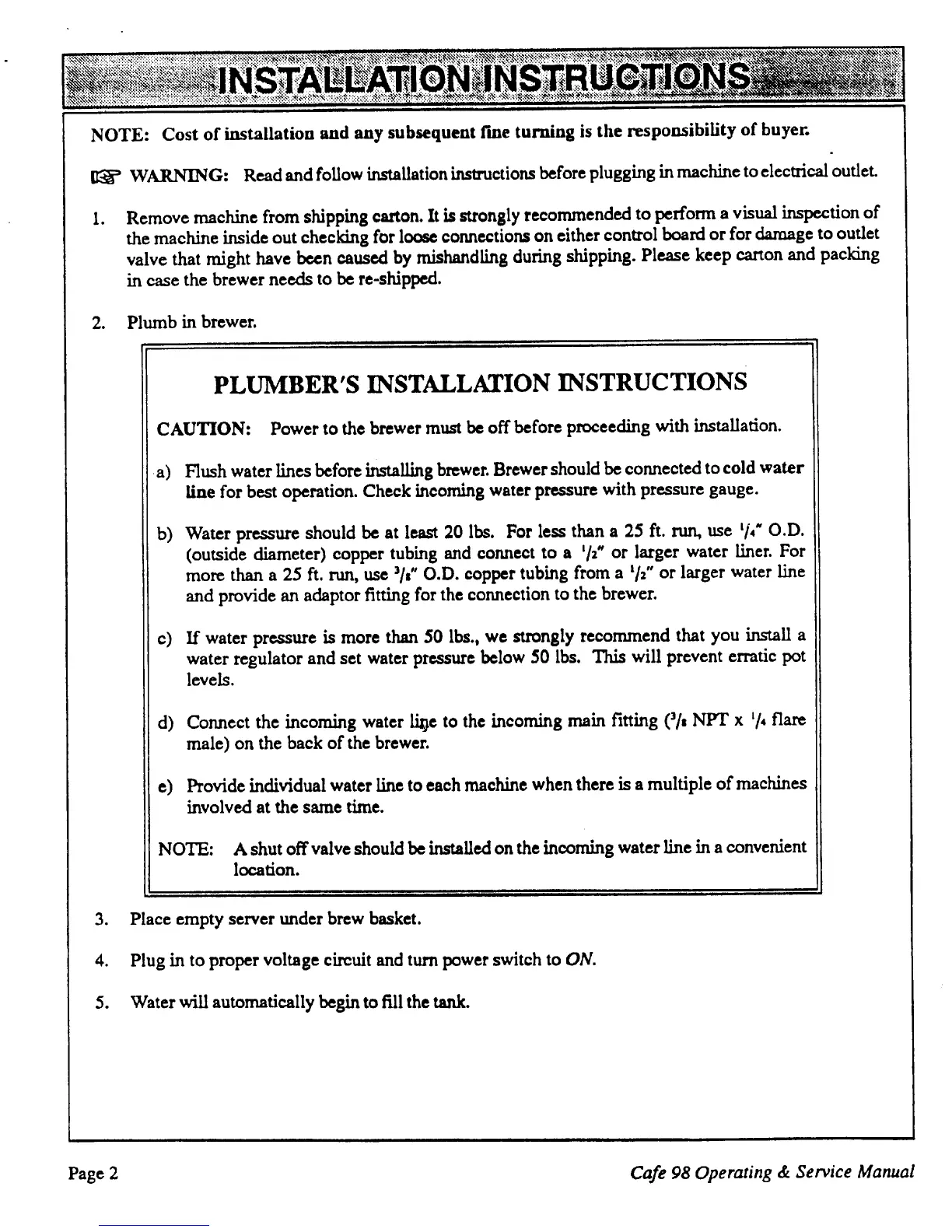 Cafe 98 B145-0 - INSTALLATION INSTRUCTIONS; PLUMBERS INSTALLATION INSTRUCTIONS