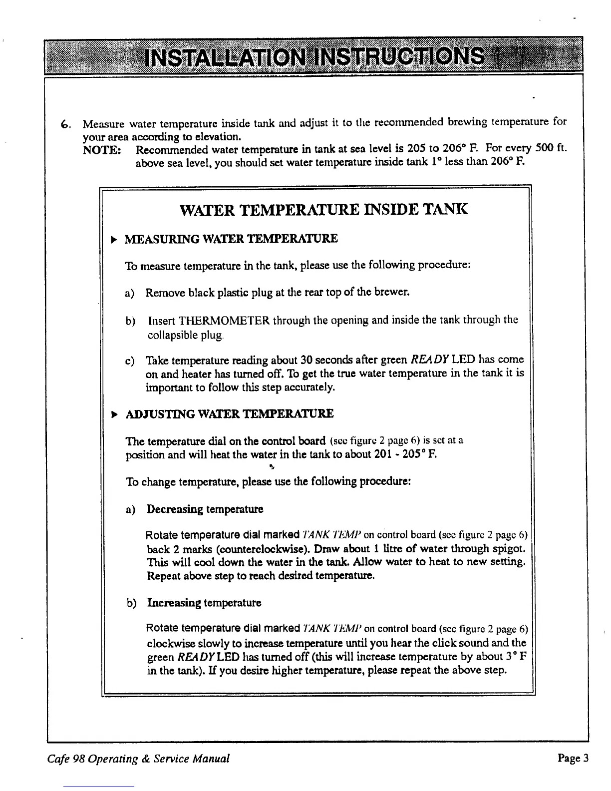 Cafe 98 B145-0 - MEASURING AND ADJUSTING WATER TEMPERATURE