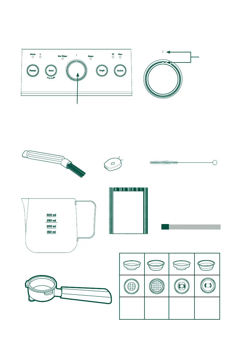 Cafe BELLISSIMO - Accessories; Cleaning and Maintenance Tools; Filter Types; Milk Pitcher