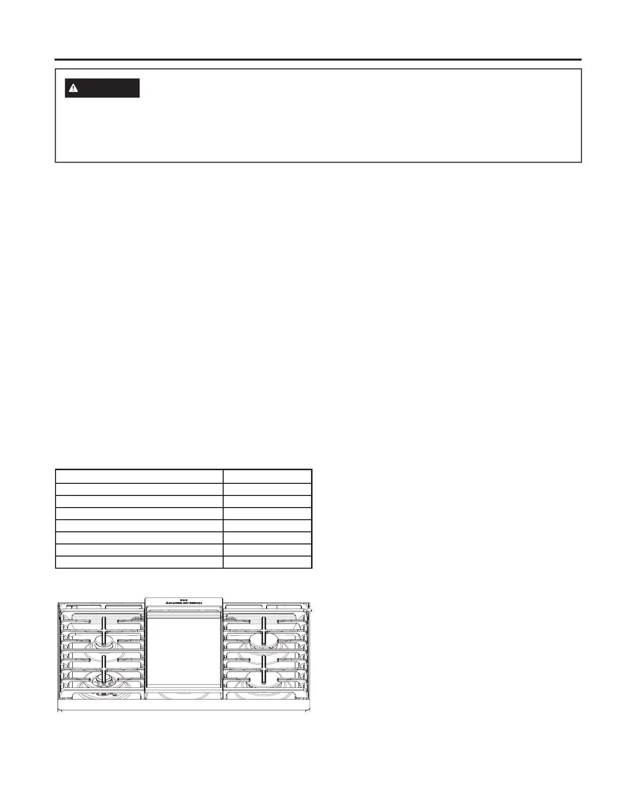 FHQWHU JUDWH LI SUHVHQW DQG UHSODFH LW ZLWK WKH JULGGOH 'R QRW WXUQ RQ WKH FHQWHU EXUQHUV XQWLO \RX DUH FHUWDLQ WKH