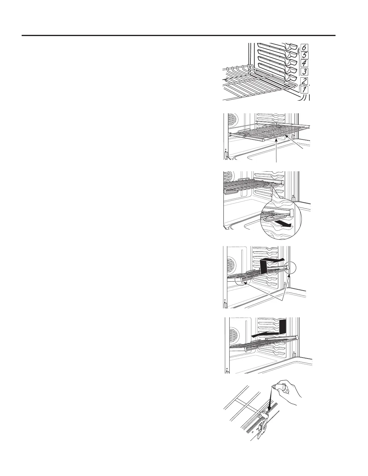 oven supports, tilt up the front of the rack and push it