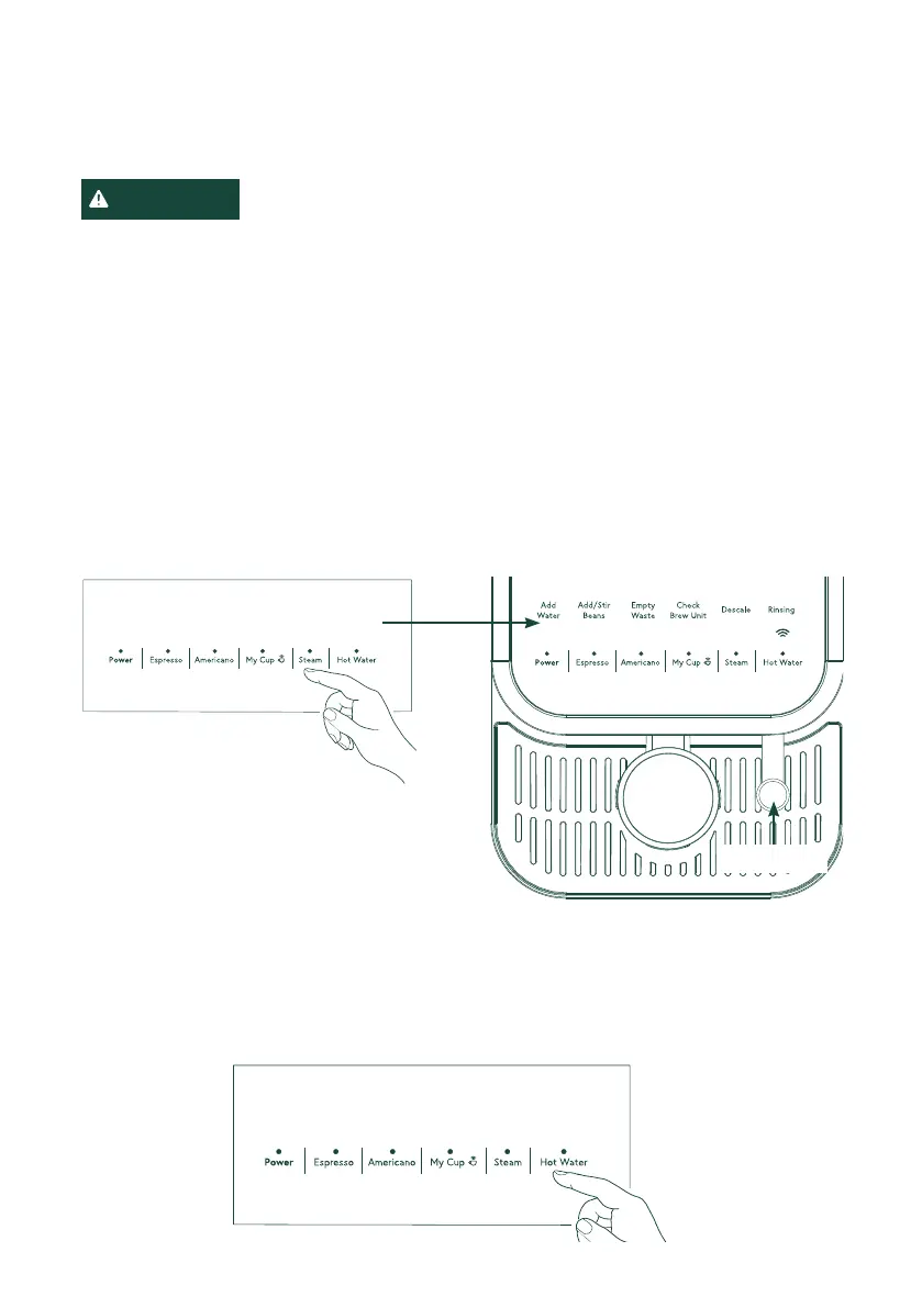 Light will start flashing. When the water is preheated, the Steam Wand Light will go steady and